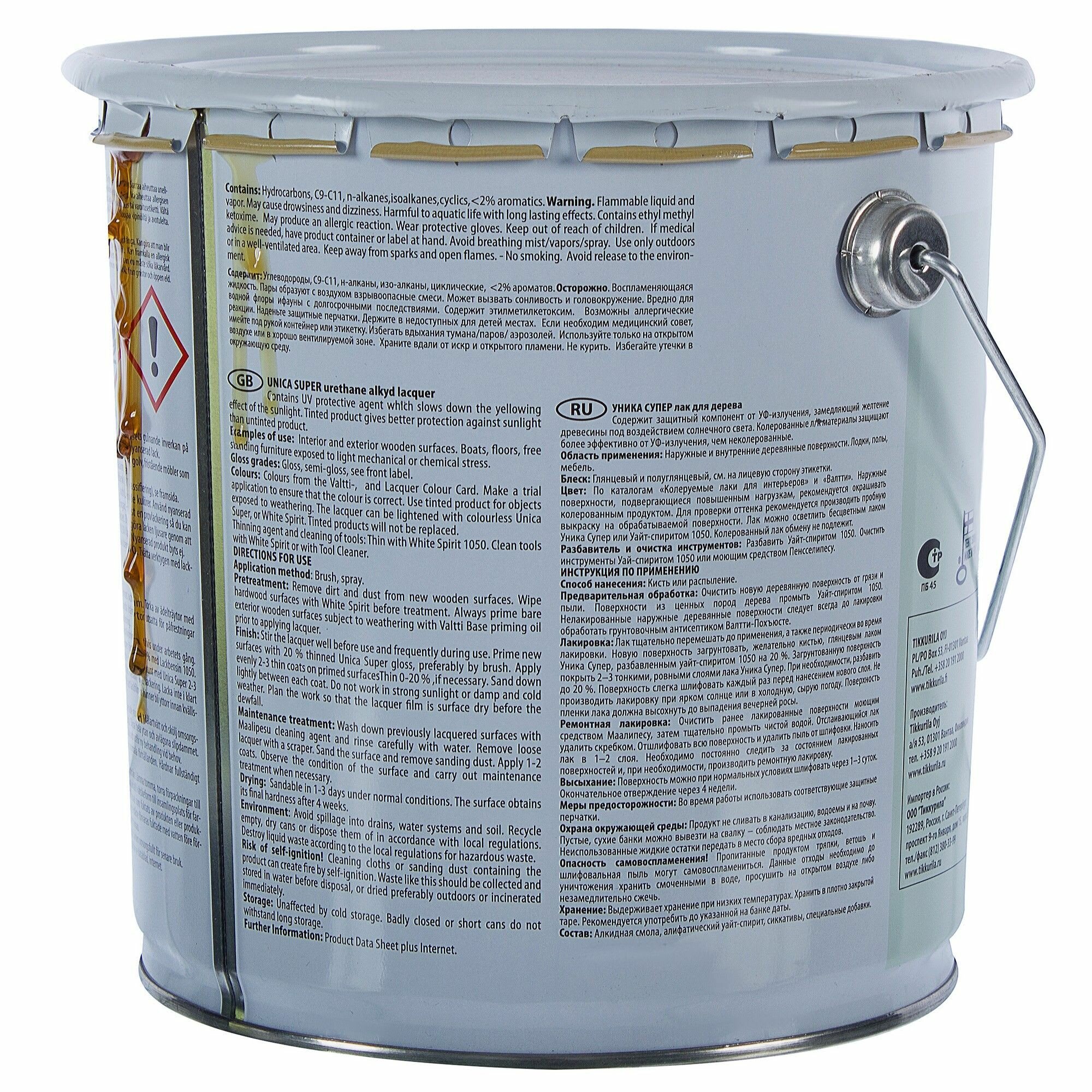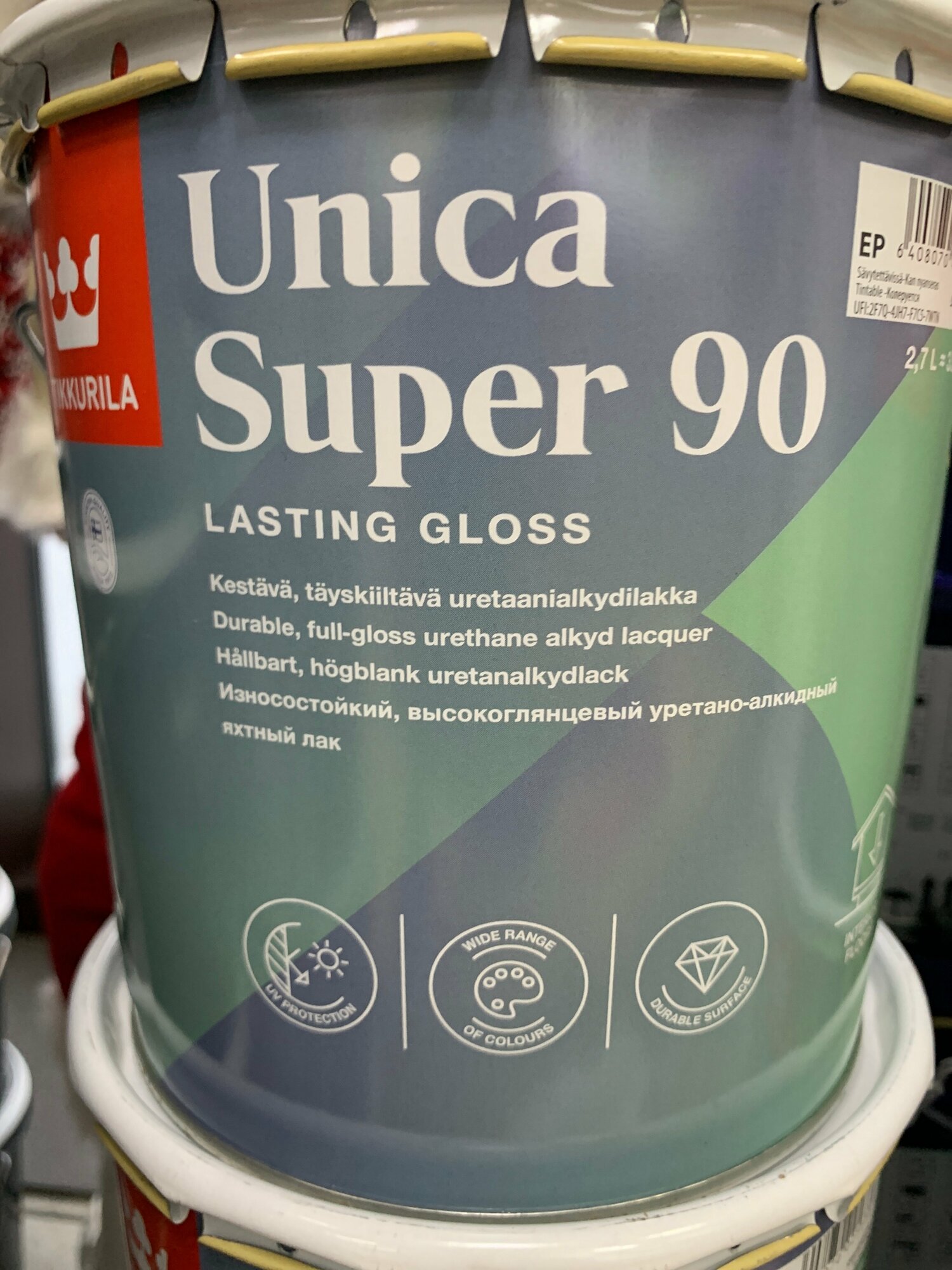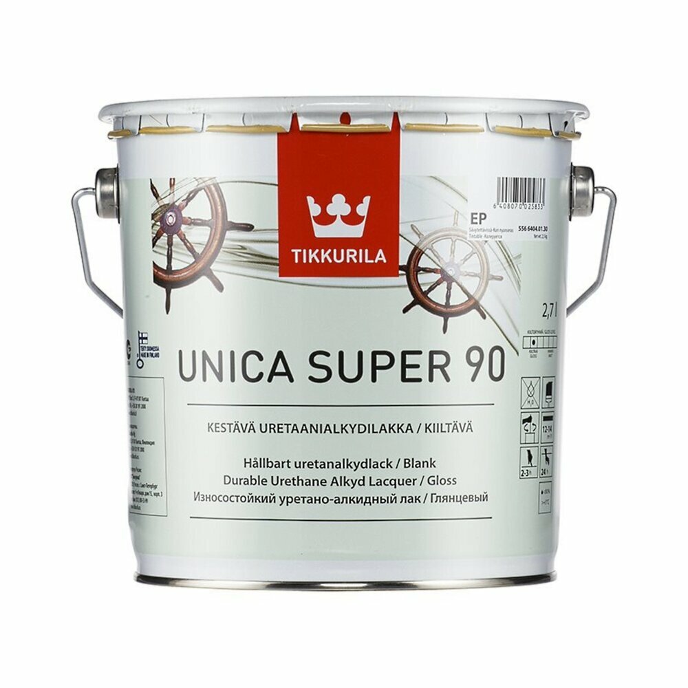 TIKKURILA UNICA SUPER 90 лак алкидно уретановый универсальный износостойкий, высокоглянцевый (2,7л)
