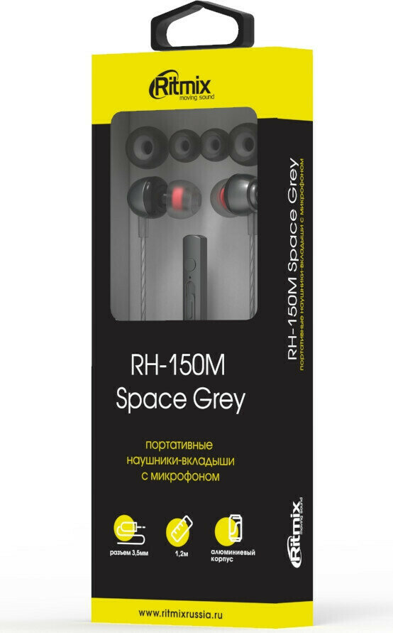 Наушники внутриканальные классические Ritmix RH-150M Space grey