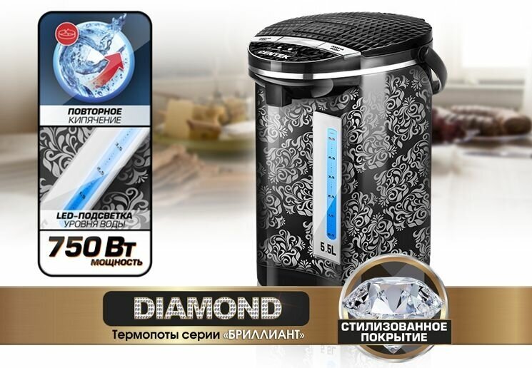 Термопот CENTEK CT-0086 DIAMOND 5,5л, 750 Вт, черный