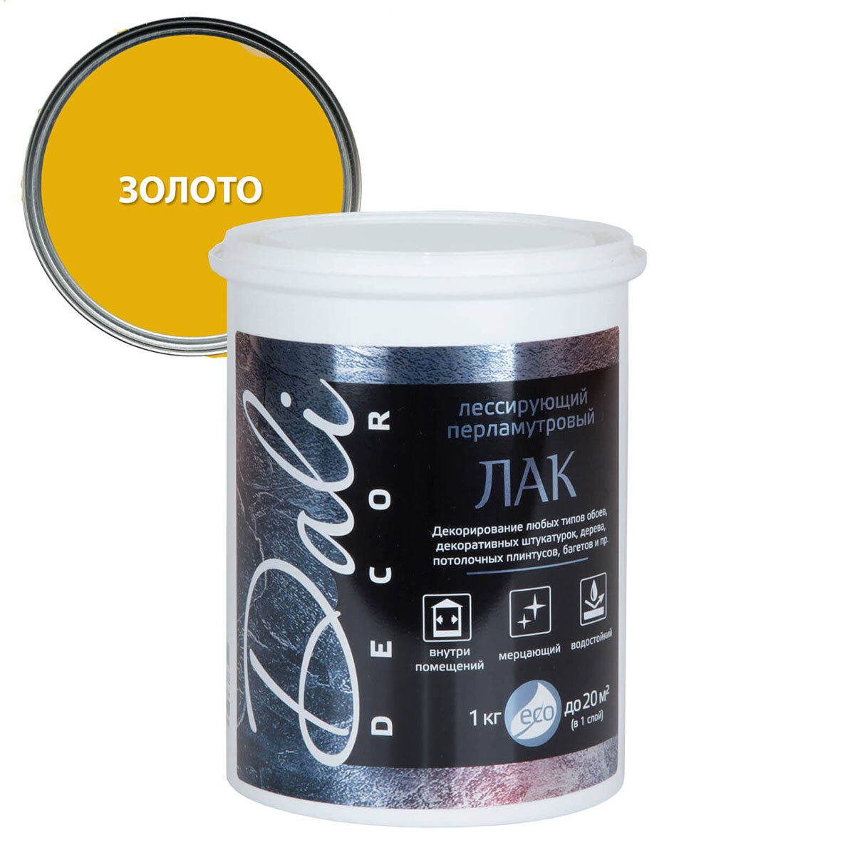 Dali Decor / Дали Декор лак лессирующий перламутровый водостойкий 1кг золото