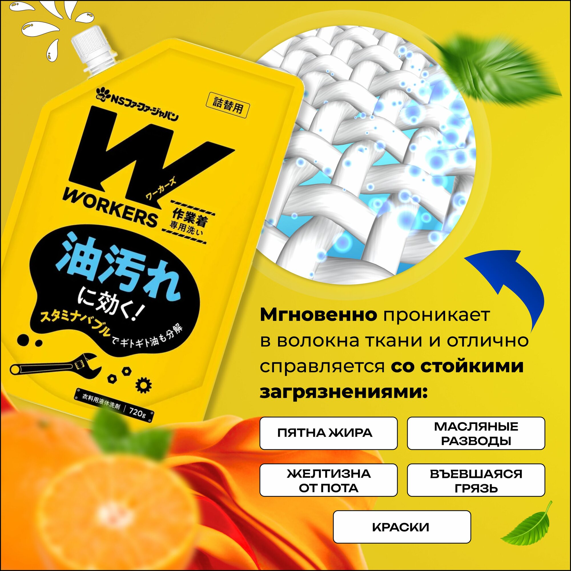 Жидкость для стирки NS FaFa Japan Workers для сильнозагрязненной одежды, 0.72 кг, пакет