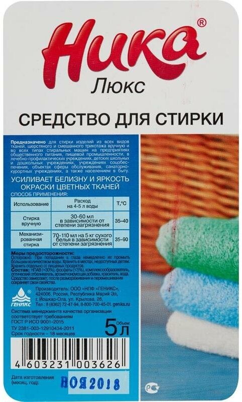 Ниже Вы можете прочитать отзывы на Средство для стирки Ника жидкое универсальное 5 л, "Люкс", для всех типов ткани (), ознакомится с подробными характеристиками, посмотреть интересные обзоры и фотографии на Средство для стирки Ника жидкое универсальное 5 л, "Люкс", для всех типов ткани ().