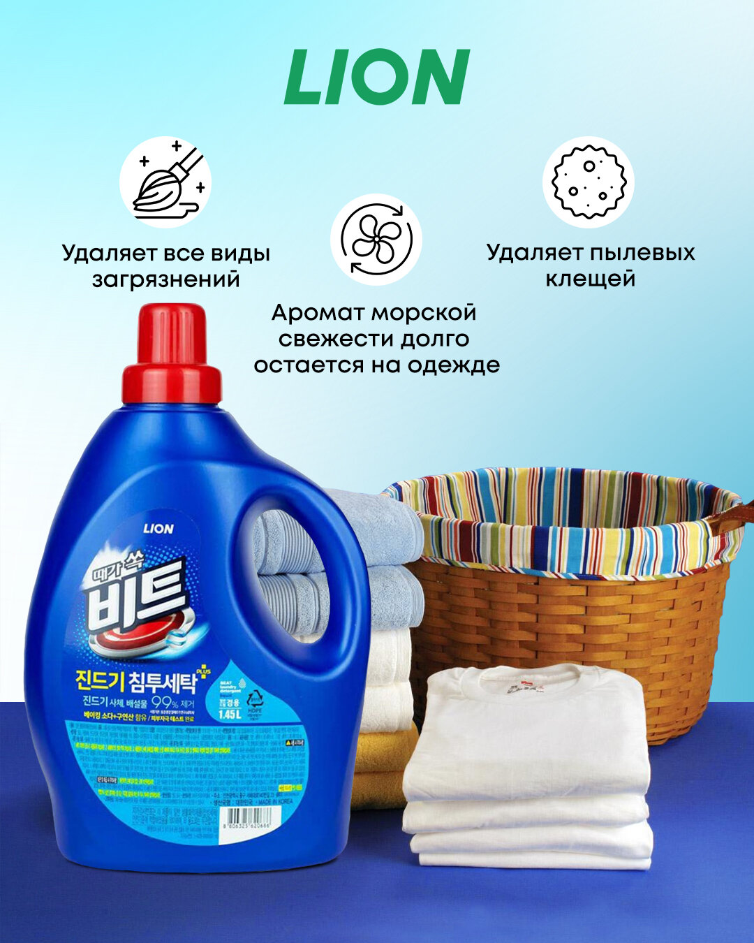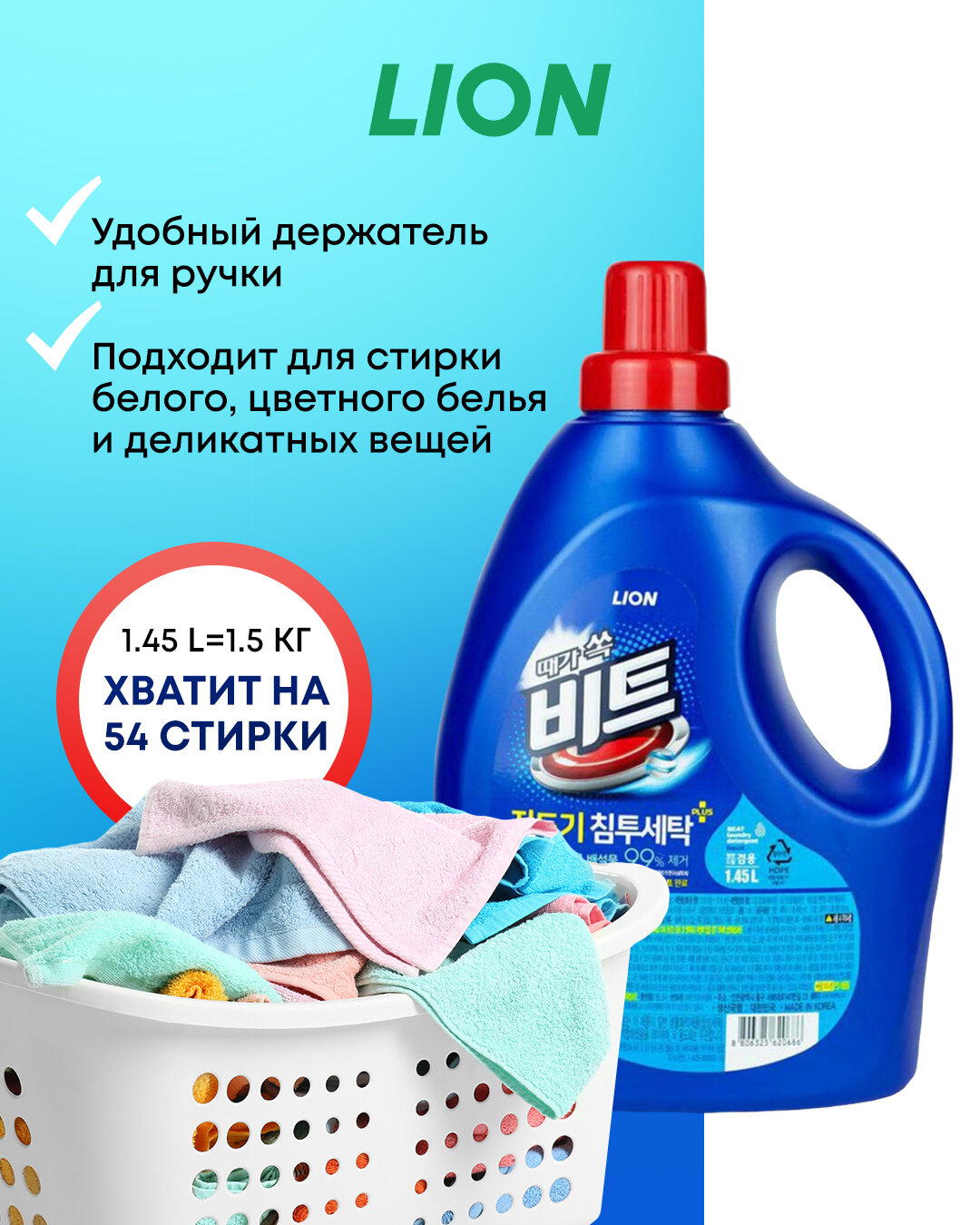 СохранитьLION Beat liquid 1.45L (1.5kg) bottle Жидкость для стирки (концентрат) интересное: