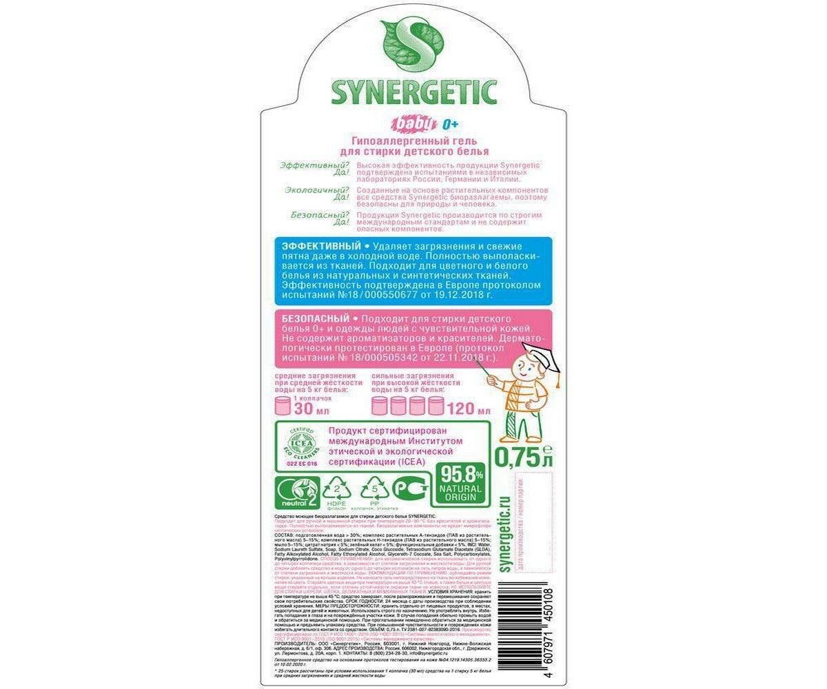 Гель для стирки Детского белья 0,75л - Synergetic [4607971450108]