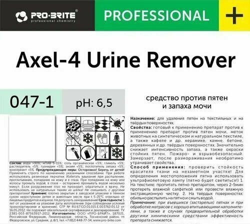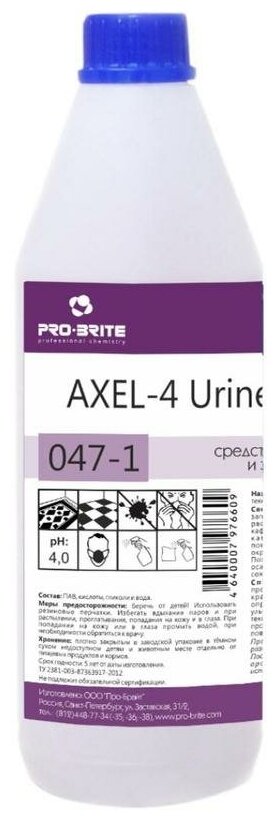 Промышленная химия Pro-Brite Axel-4 Urine Remover, для удаления пятен и запаха мочи, 1л (047-1)