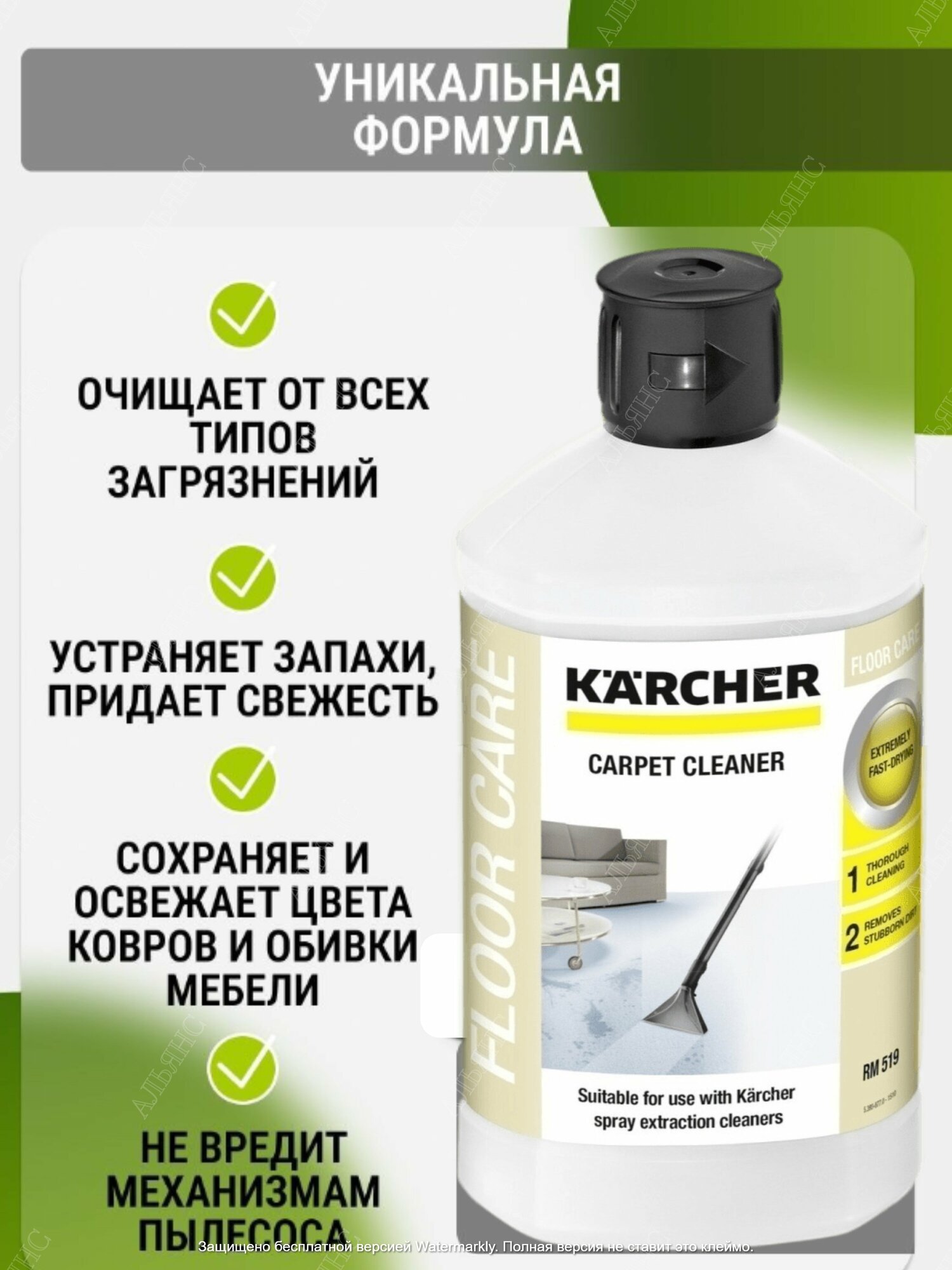 Средство RM 519 для чистки ковров 3 в 1 (1 л ) Karcher 6.295-771