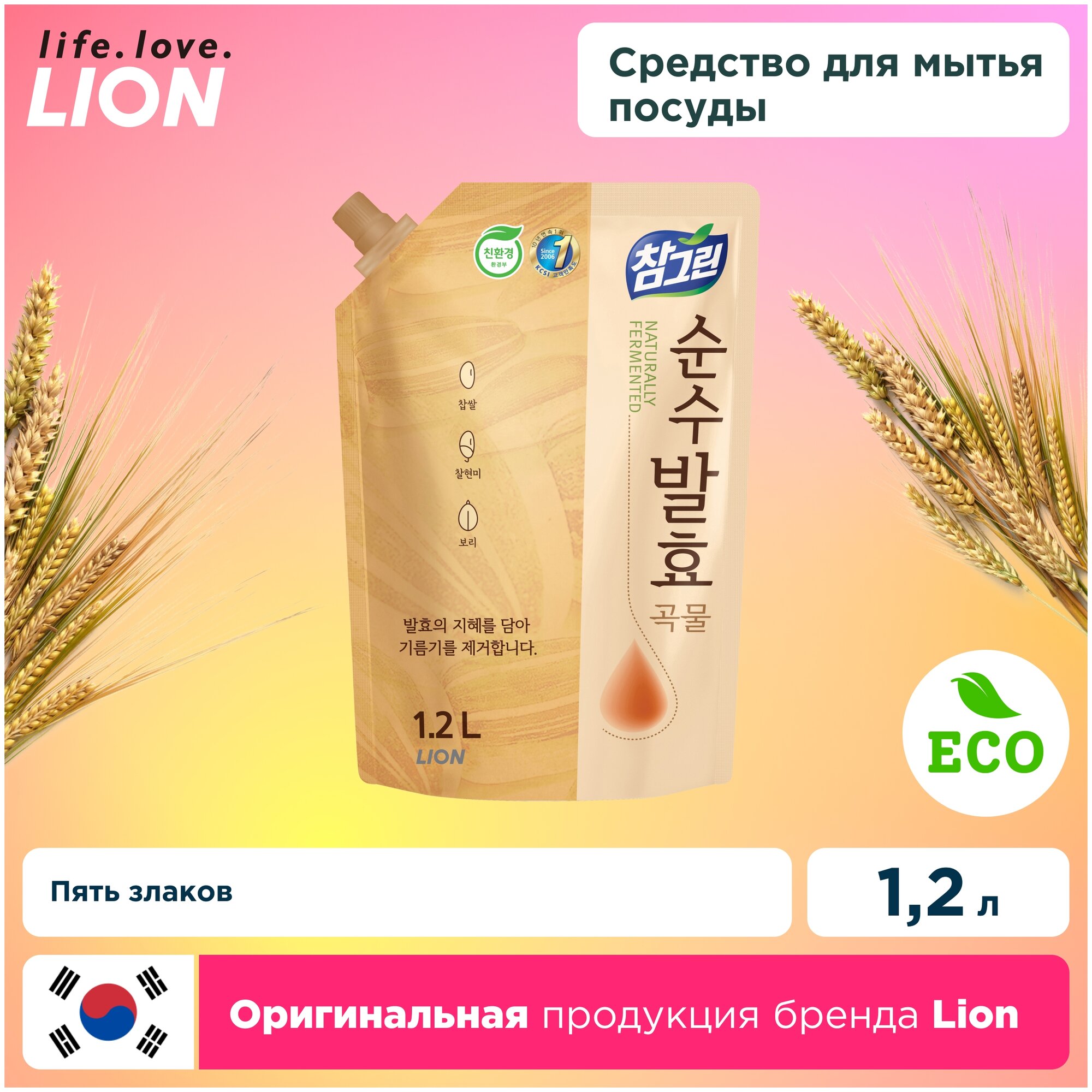 Средство для мытья посуды Lion Chamgreen Pure Fermentation 5 злаков, 1.2 л, мягкая упаковка