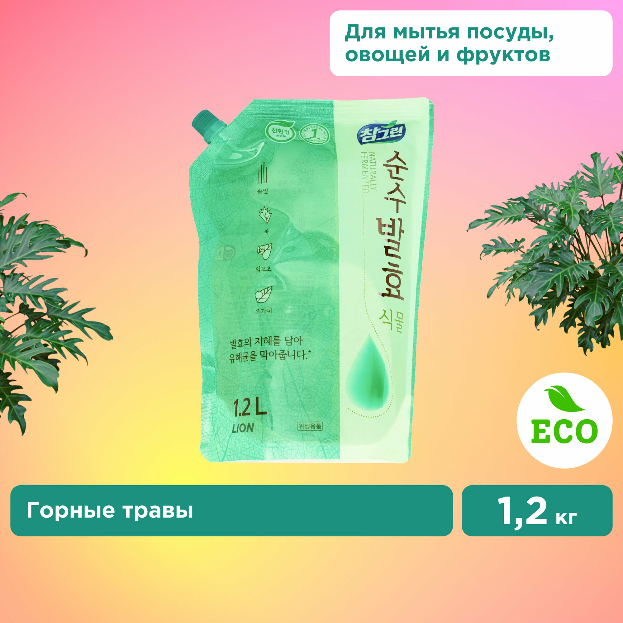 Средство для мытья посуды Lion Chamgreen Pure Fermentation Горные травы, 1.2 л, мягкая упаковка