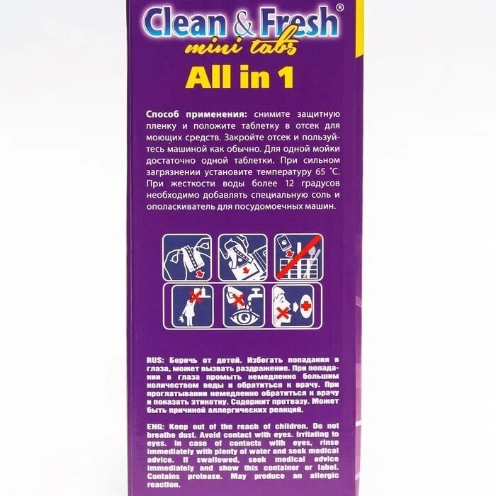 Мини-таблетки для посудомоечных машин Clean & Fresh CLEAN&FRESH All in 1, 60 шт*10 г