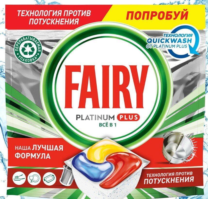 Ср-во для мытья посуды, FAIRY Platinum All in, в капсулах для посудомоечных машин, 125 шт 6495921