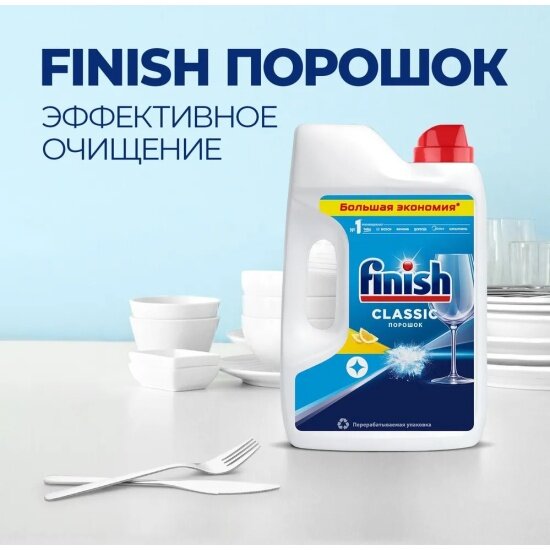 Порошок для посудомоечной машины Finish Classic средство для мытья посуды в пмм с эффектом замачивания, Лимон, 1 кг