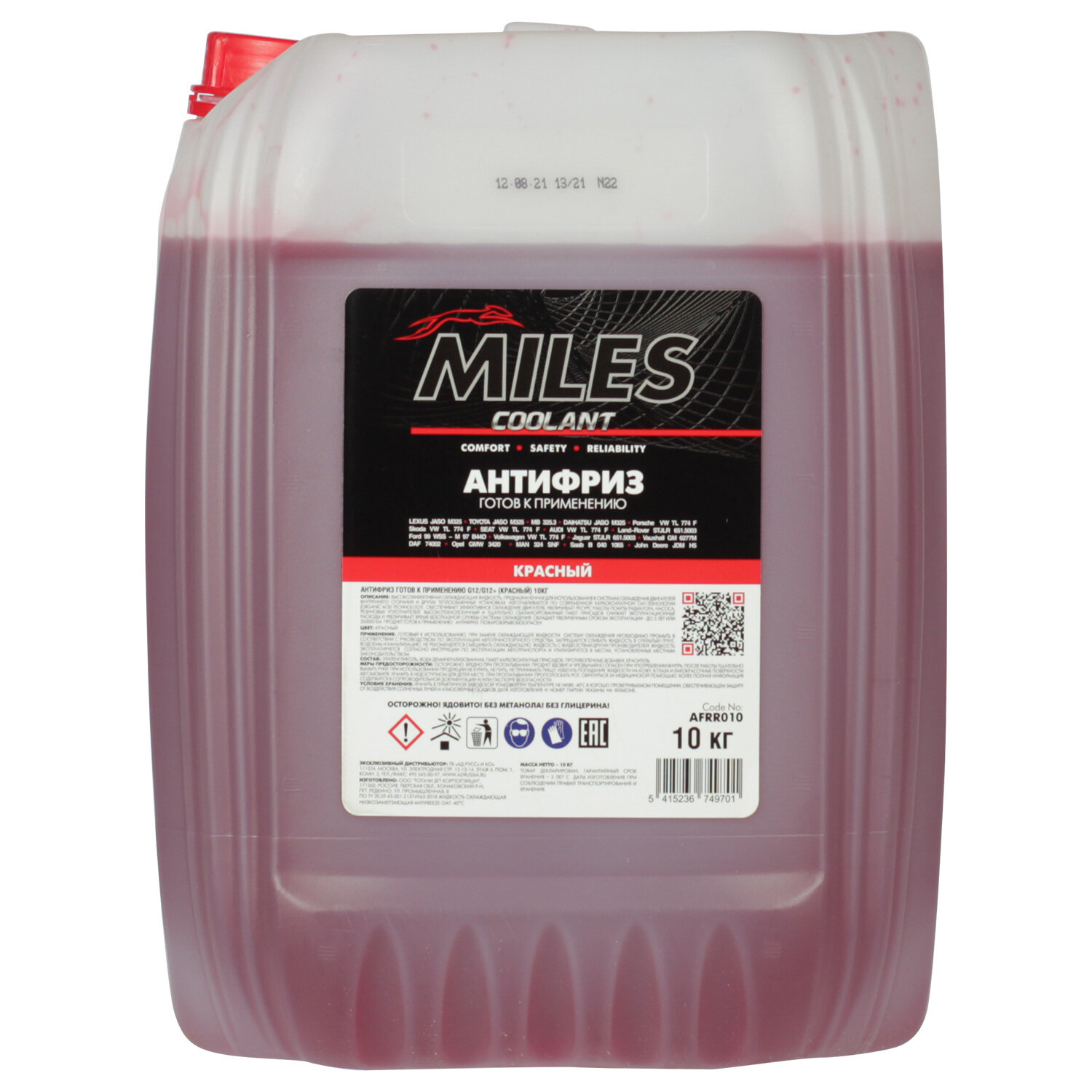 Антифриз готов к применению G12 / G12+ (красный) (10 л / 10кг) AFRR010 MILES AFRR010