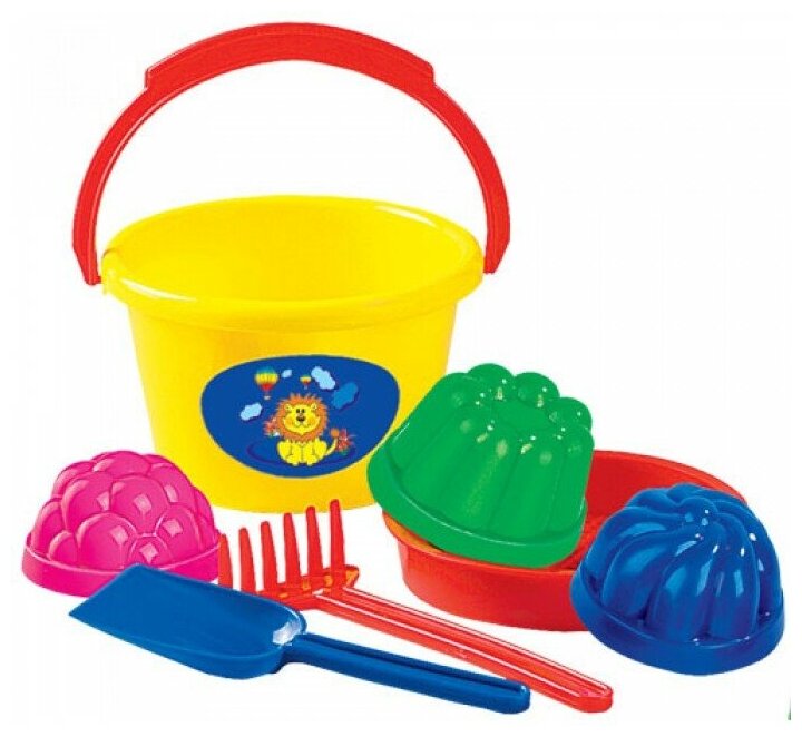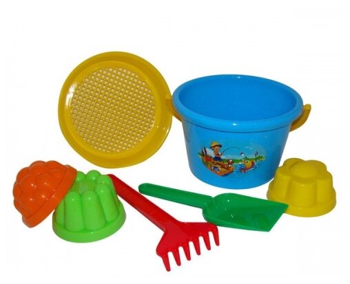 Полесье. Песочный набор №11 (ведро ср.,сито,3 форм,лопатка,грабли) интересное: