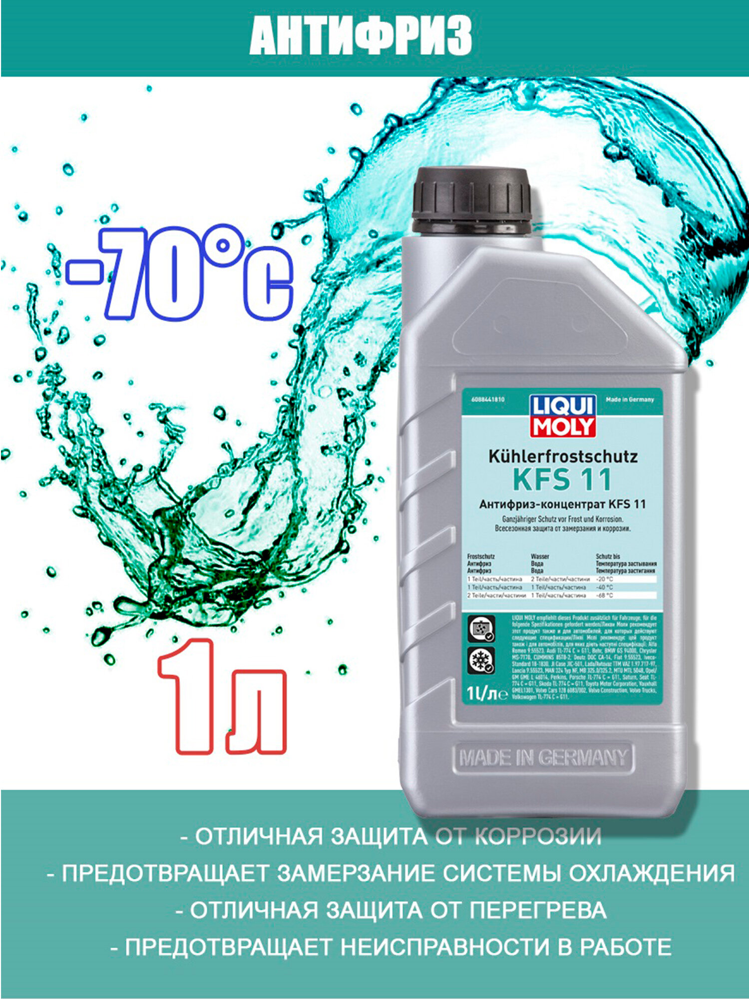 Ниже Вы можете прочитать отзывы на Антифриз-Концентрат liqui moly kuhlerfrostschutz kfs 11 1л (8844), ознакомится с подробными характеристиками, посмотреть интересные обзоры и фотографии на Антифриз-Концентрат liqui moly kuhlerfrostschutz kfs 11 1л (8844).