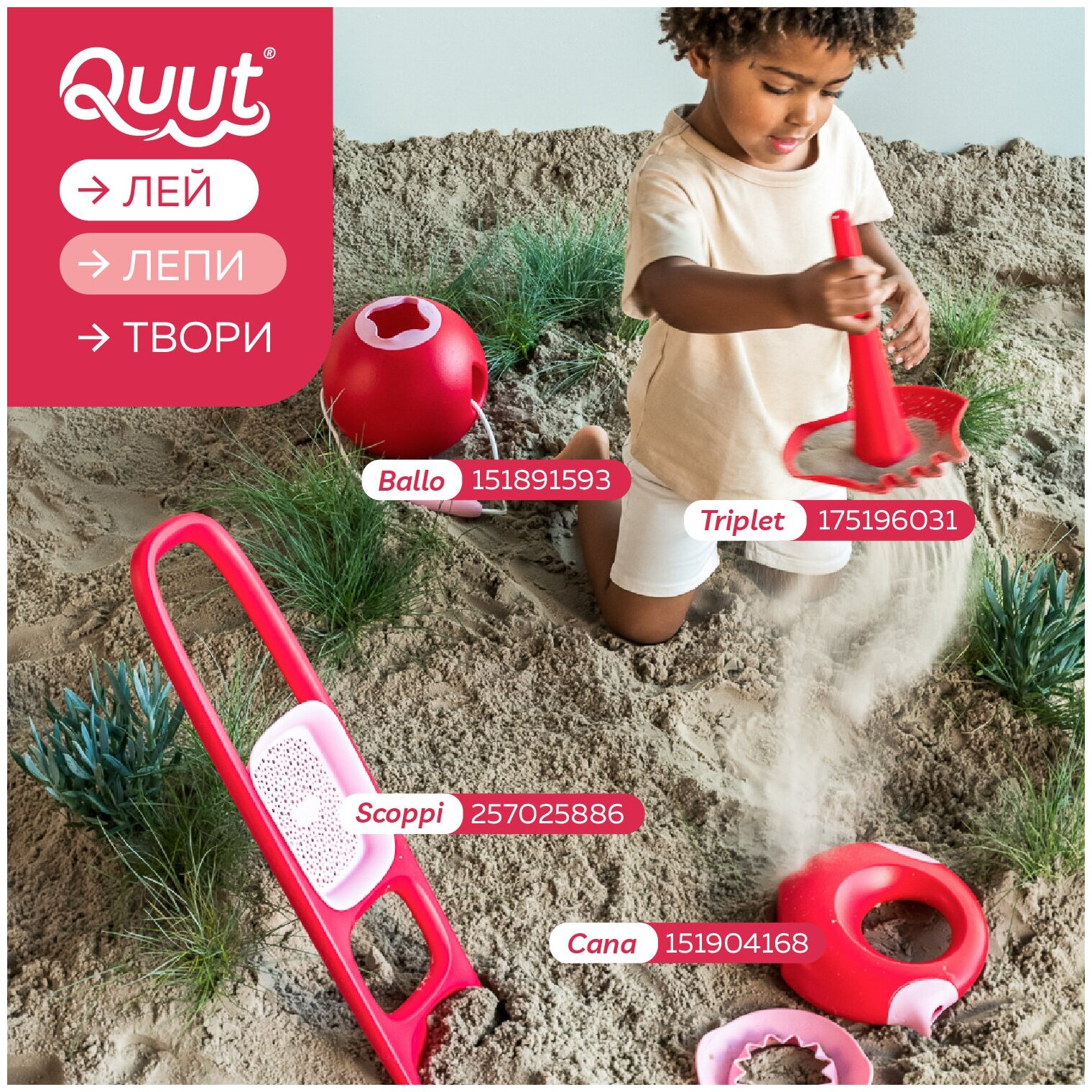 Лопата с ситом для песка и снега Quut Scoppi. Вишнёво-красный и сладкий розовый интересное: