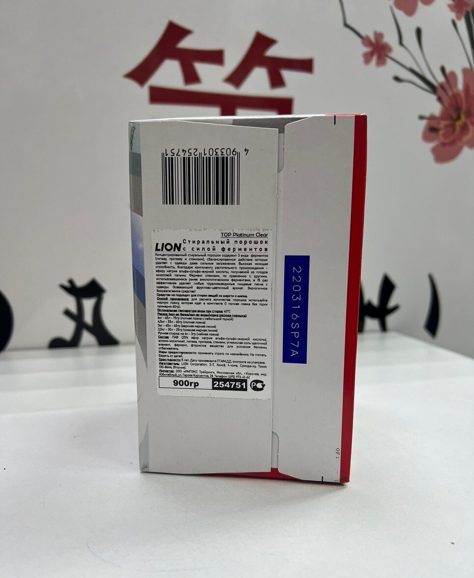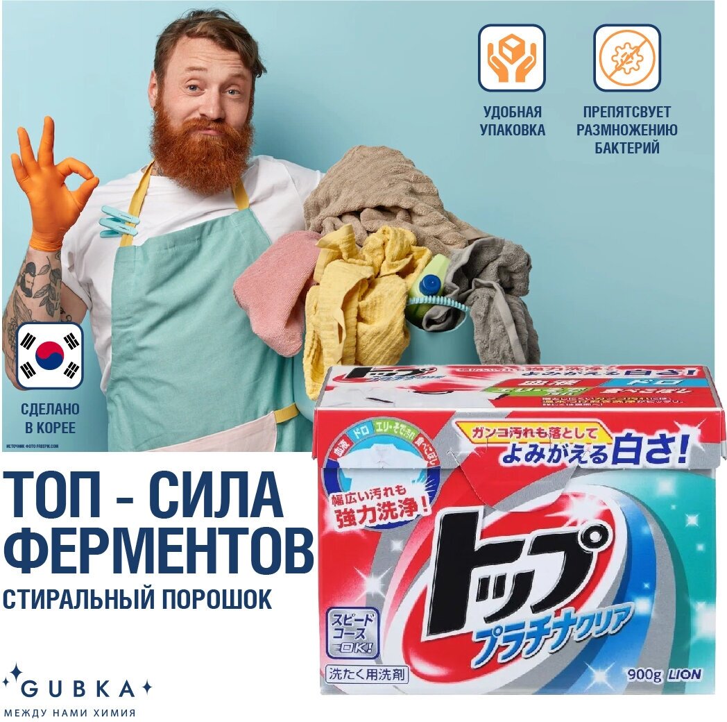 LION Стиральный порошок TOP Platinum Clear сила ферментов, коробка 900 гр.