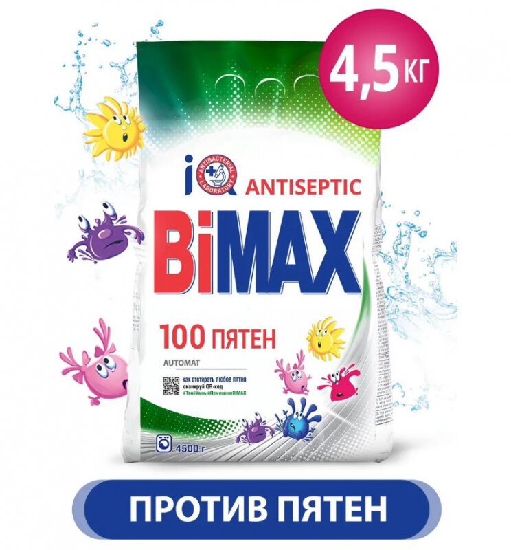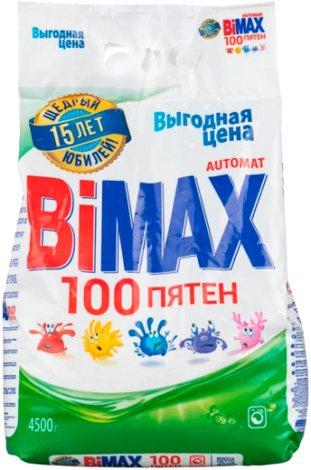 Стиральный порошок Bimax Порошок для машинной стирки 100 пятен, 4,5кг (968-1/1015-1/1075-1)