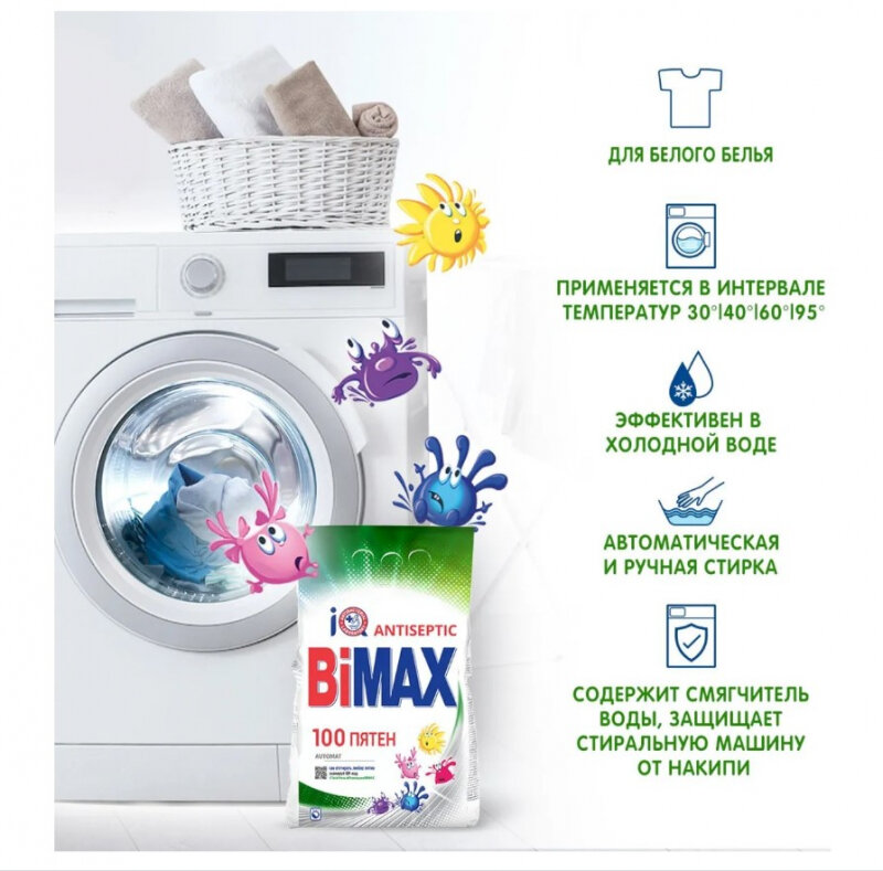 Стиральный порошок-автомат Bimax 9 кг, 100 пятен