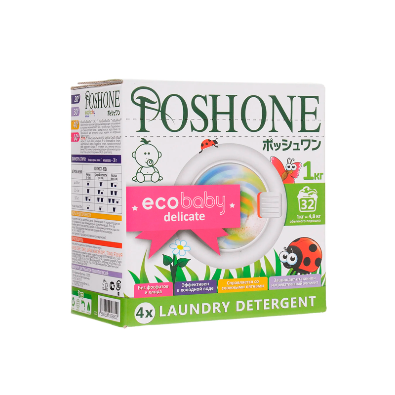 Стиральный порошок POSHONE Ecobaby Delicate для детской одежды и деликатных тканей 1 кг