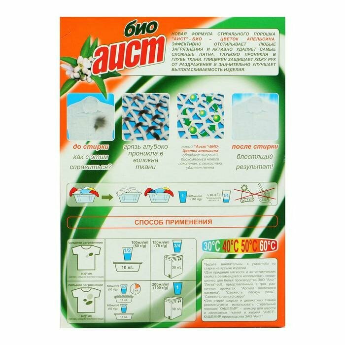 Аист Стиральный порошок Био, Цветок Апельсина, с глицерином, ручная стирка, для всех типов ткани, 400 гр, 5 шт