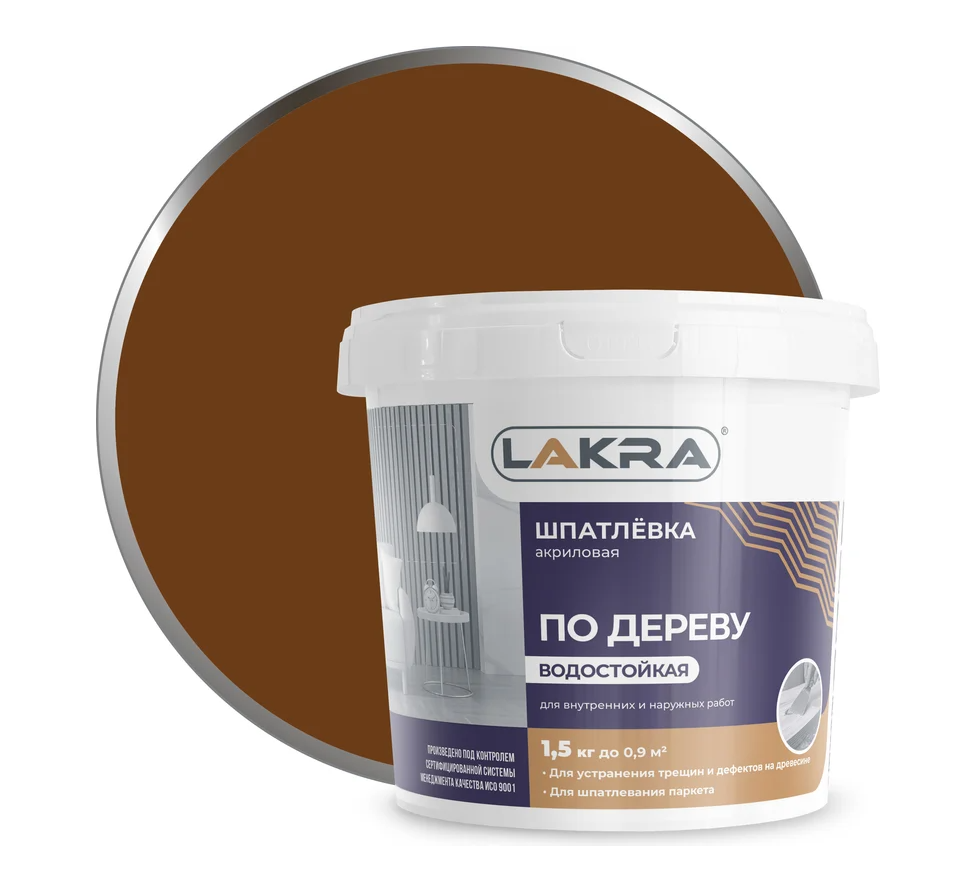 Шпатлевка по дереву Лакра акриловая, Орех, готовая к применению, 1,5 кг