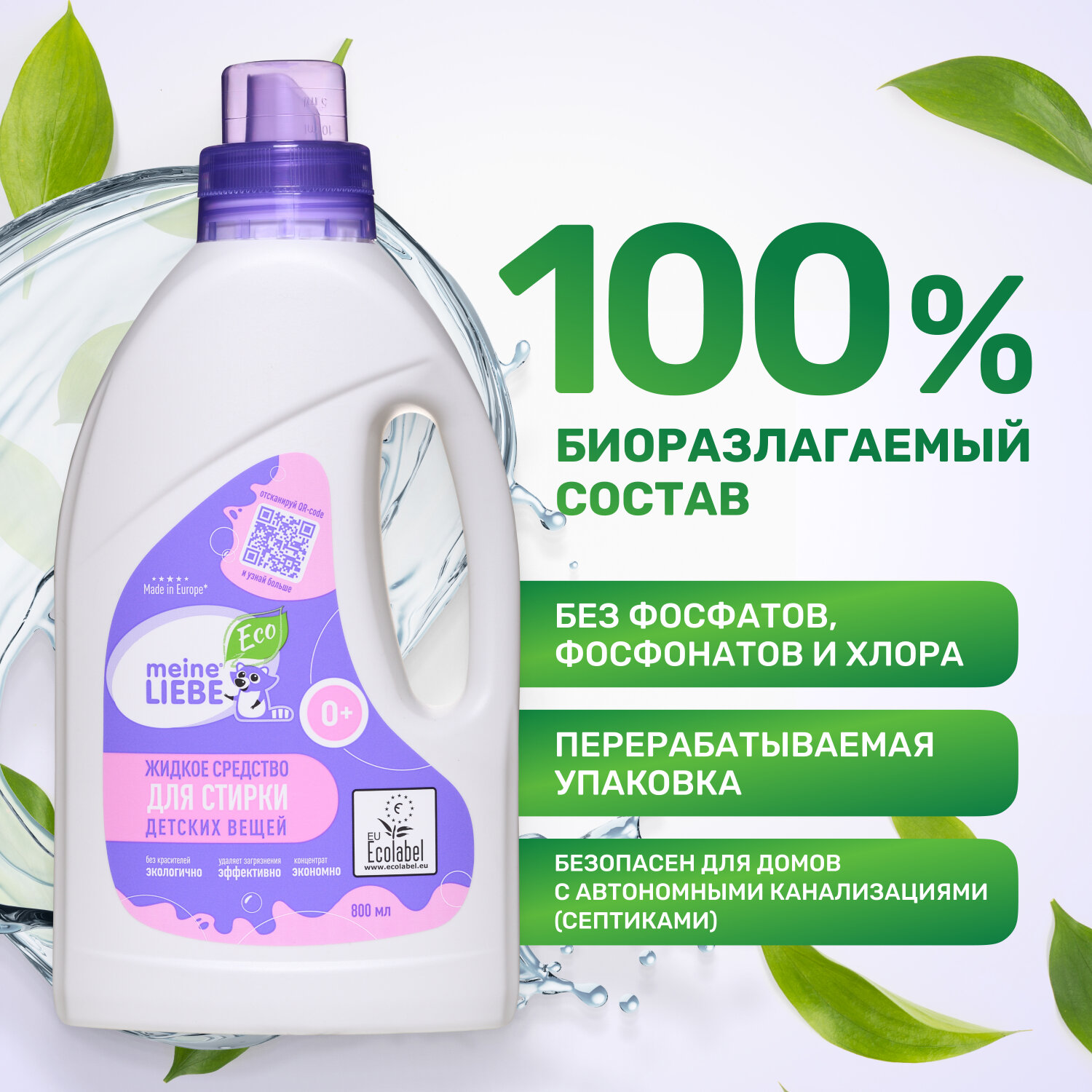 Концентрат MEINE LIEBE для стирки детского белья 0+, 800 мл