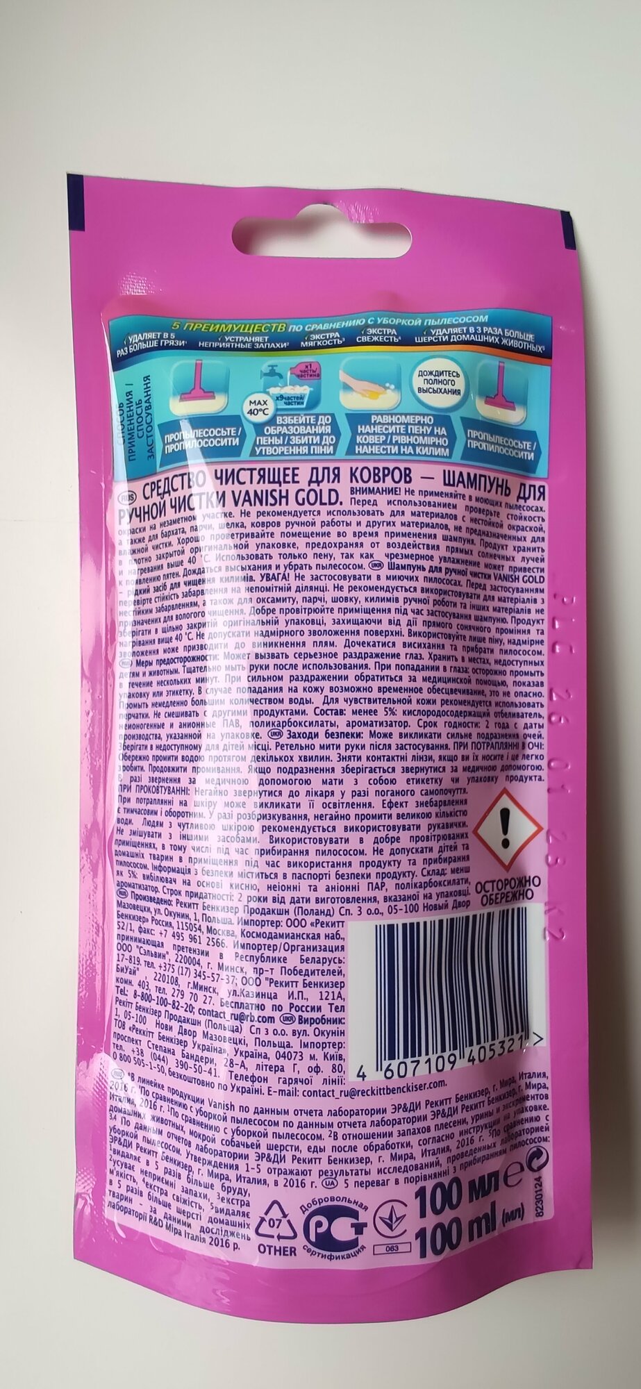 Ниже Вы можете прочитать отзывы на Средство для чистки ковров Vanish "Gold", шампунь, вручную, 100 мл, ознакомится с подробными характеристиками, посмотреть интересные обзоры и фотографии на Средство для чистки ковров Vanish "Gold", шампунь, вручную, 100 мл.
