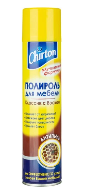 Полироль для мебели 300 мл, CHIRTON (Чиртон) антипыль, "Классик с воском", аэрозоль В комплекте: 1шт.