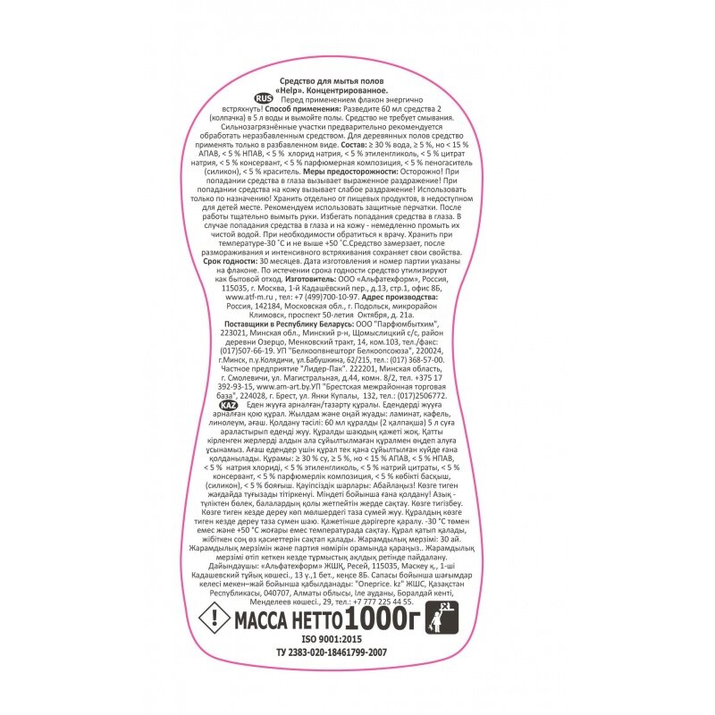 Средство для мытья пола HELP концентрат 1000мл Морской бриз 1478051 4-0305