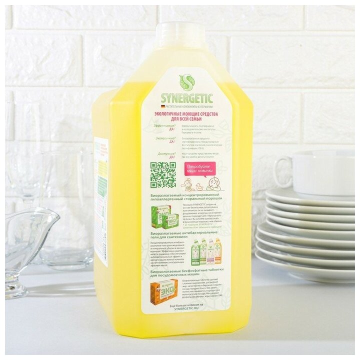 Купить Средство для посуды, овощей и фруктов SYNERGETIC «Сочный лимон» антибактериальное, 5л