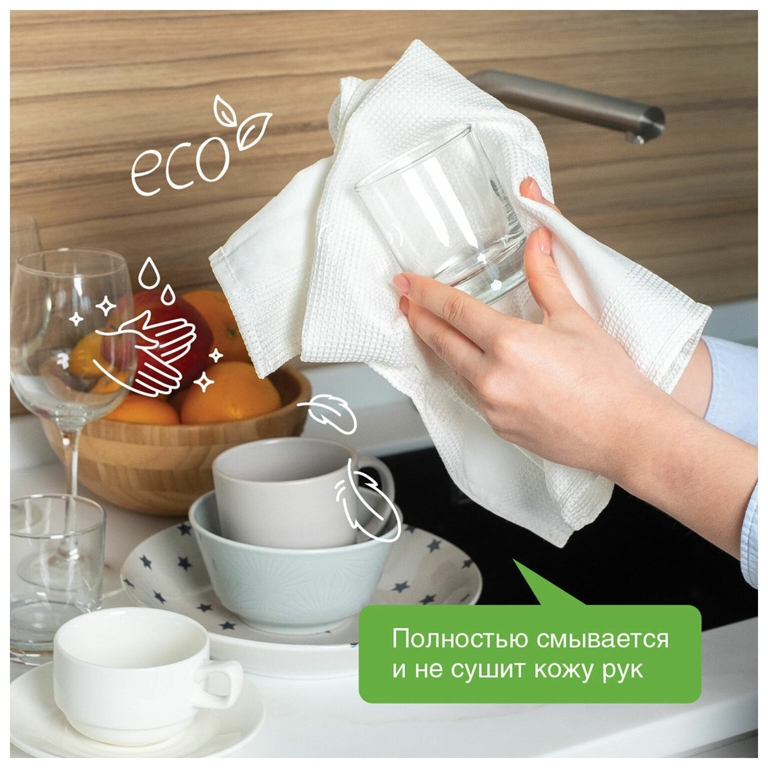 - натуральный состав - антибактериальный - подходит для мытья овощей и фруктов - смывается быстро и до конца - удобный флакон с дозатором |