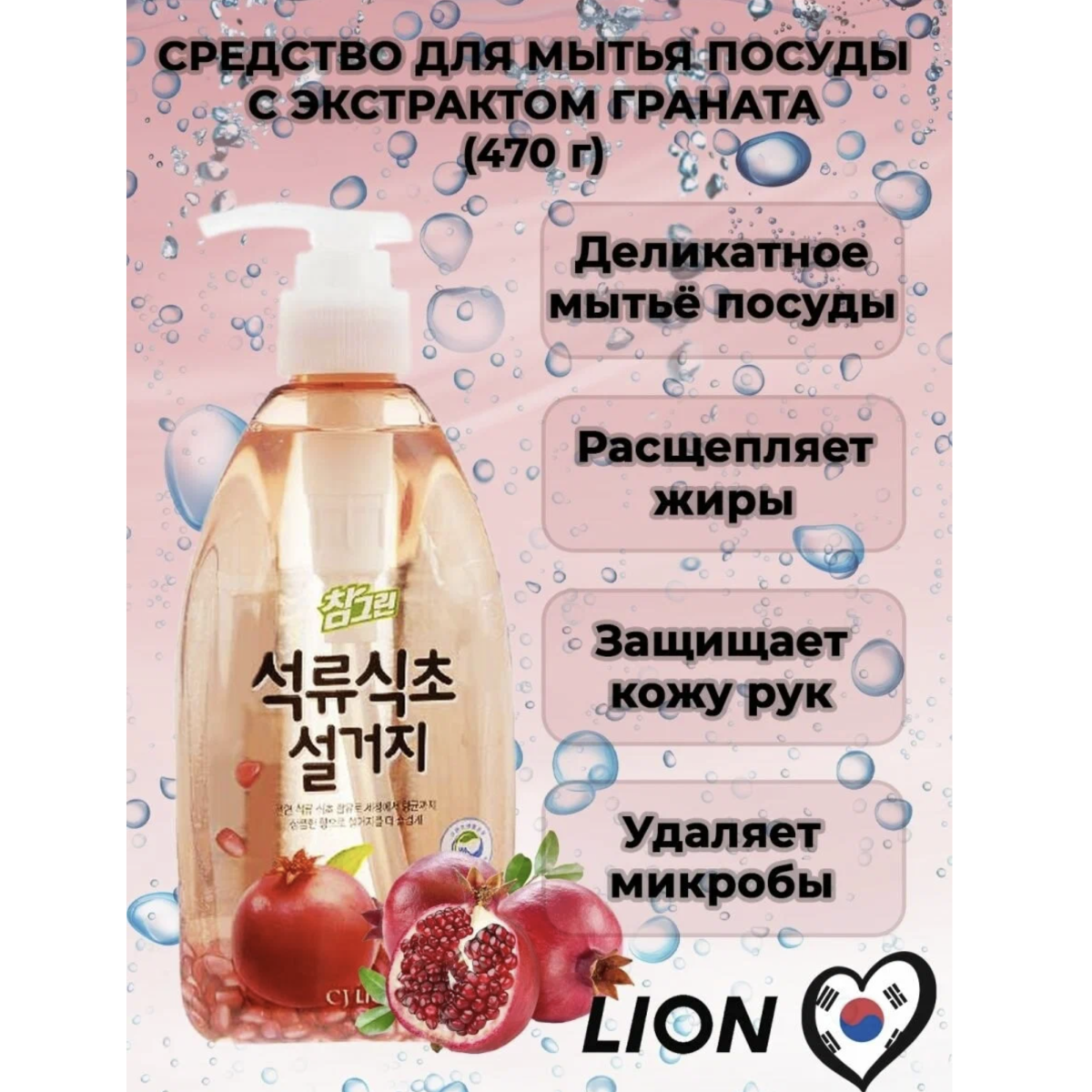 Средство для мытья посуды, овощей и фруктов 450 мл, CHAMGREEN гранат, Lion, 8806325610335