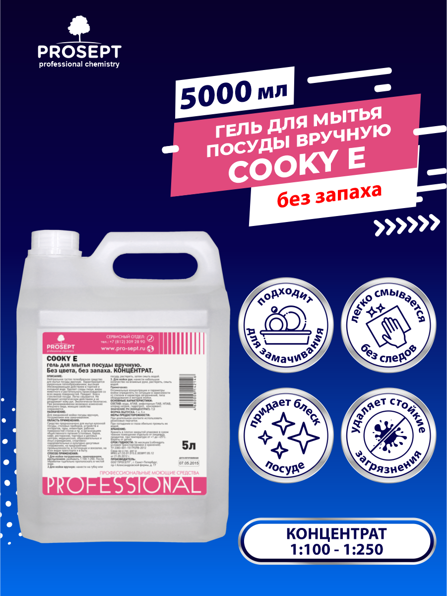 Гель для мытья посуды вручную Prosept Cooky концентрат (5л) без запаха
