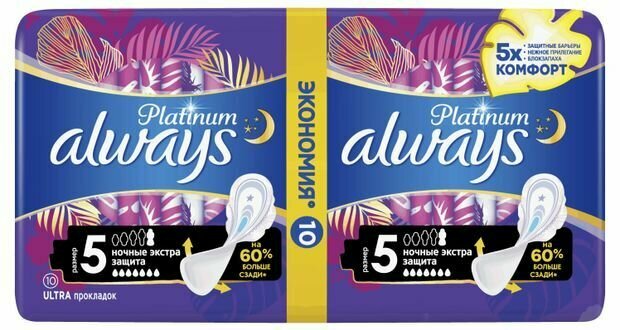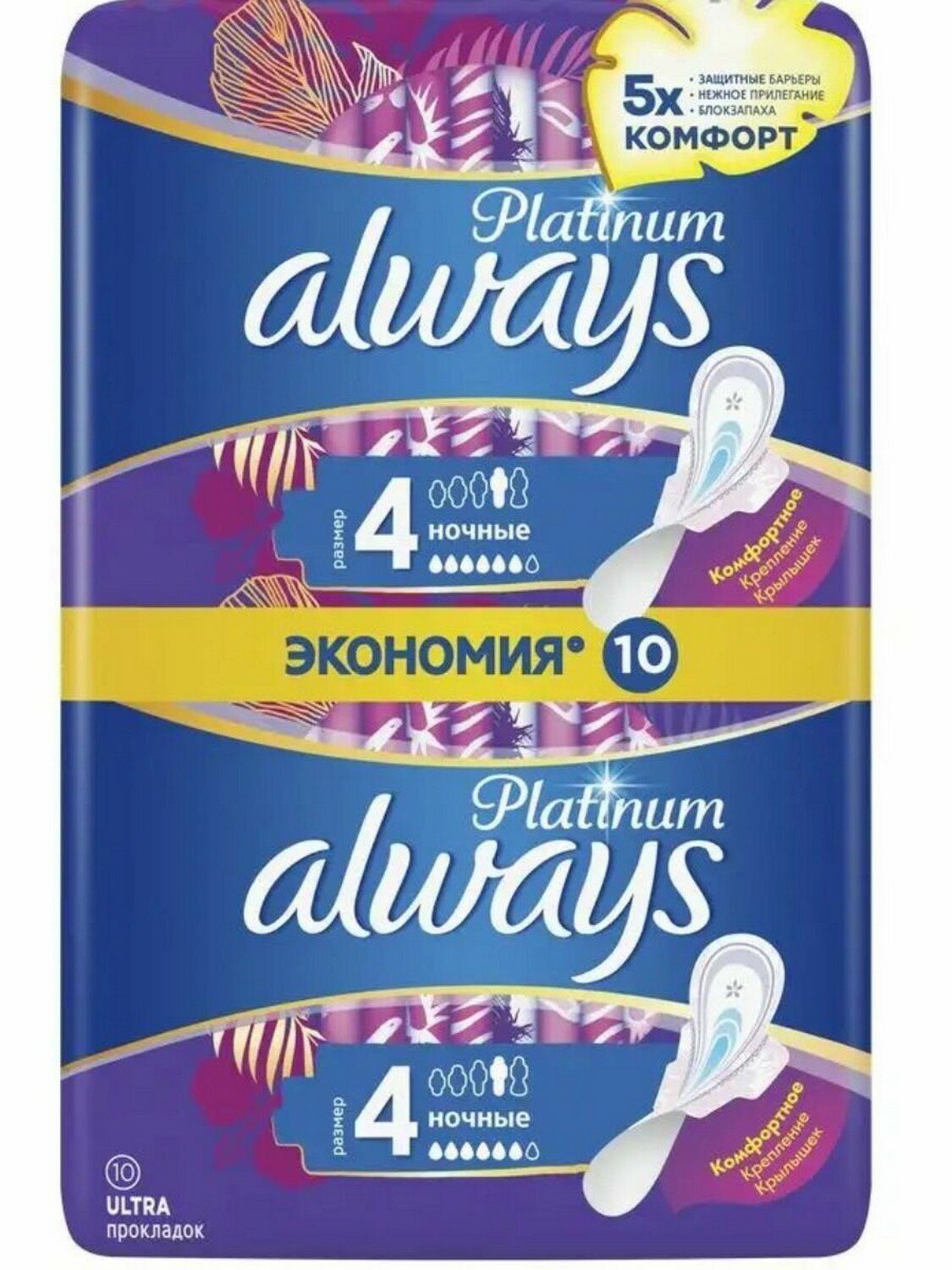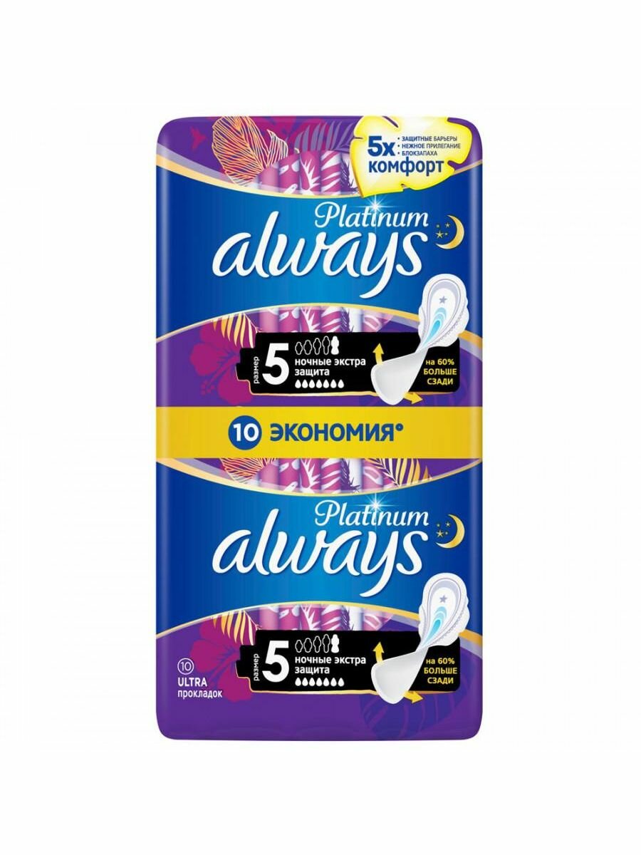 Купить Always Platinum Night (Размер 4) Гигиенические Прокладки С Крылышками, 10 Шт