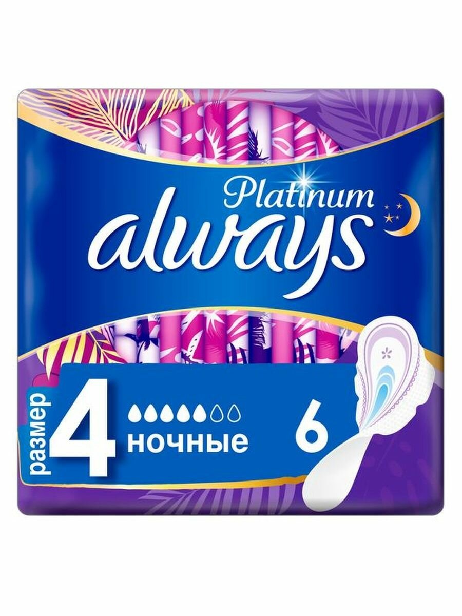 Женские гигиенические Прокладки с крылышками Always Platinum Ночные, размер 4, 6шт.