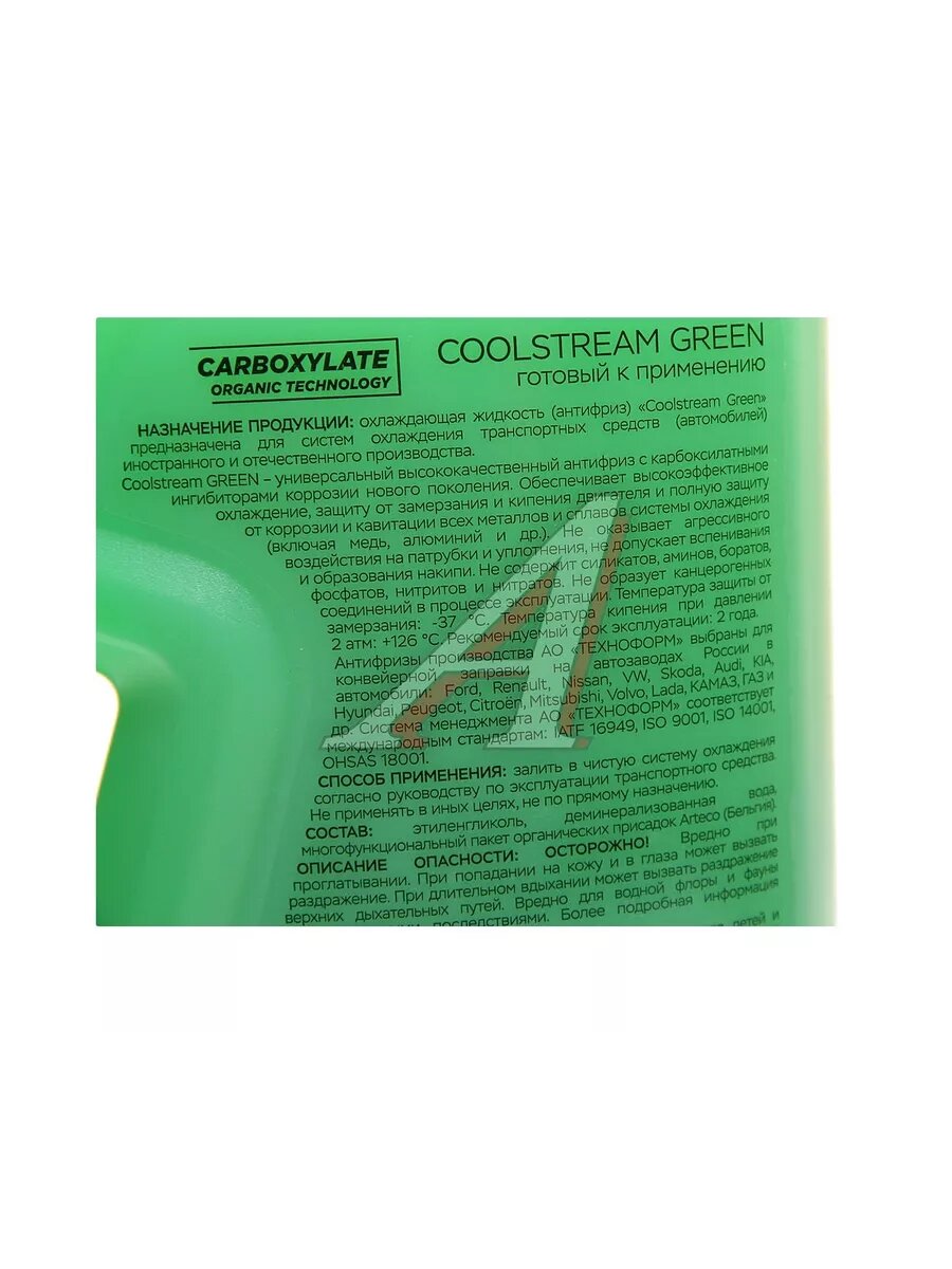 Coolstream Green (4kg)(Зеленый) -40°c Универсальный Карбоксилатный Антифриз, 4 Л Coolstream арт. CS010909GR