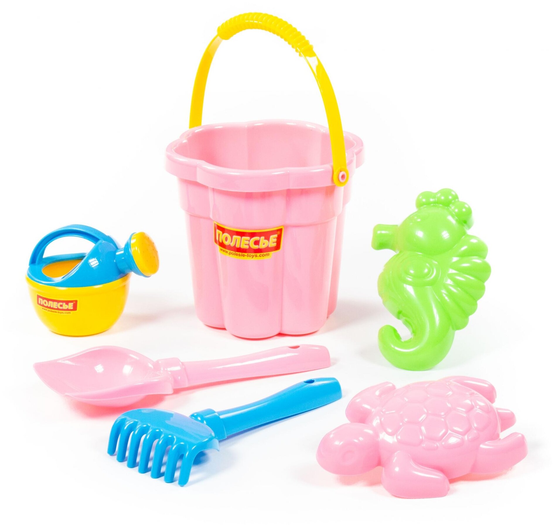 Набор игрушек для песка №309 ведро, лопатка, грабельки, формочки, лейка Полесье П-35592 интересное: