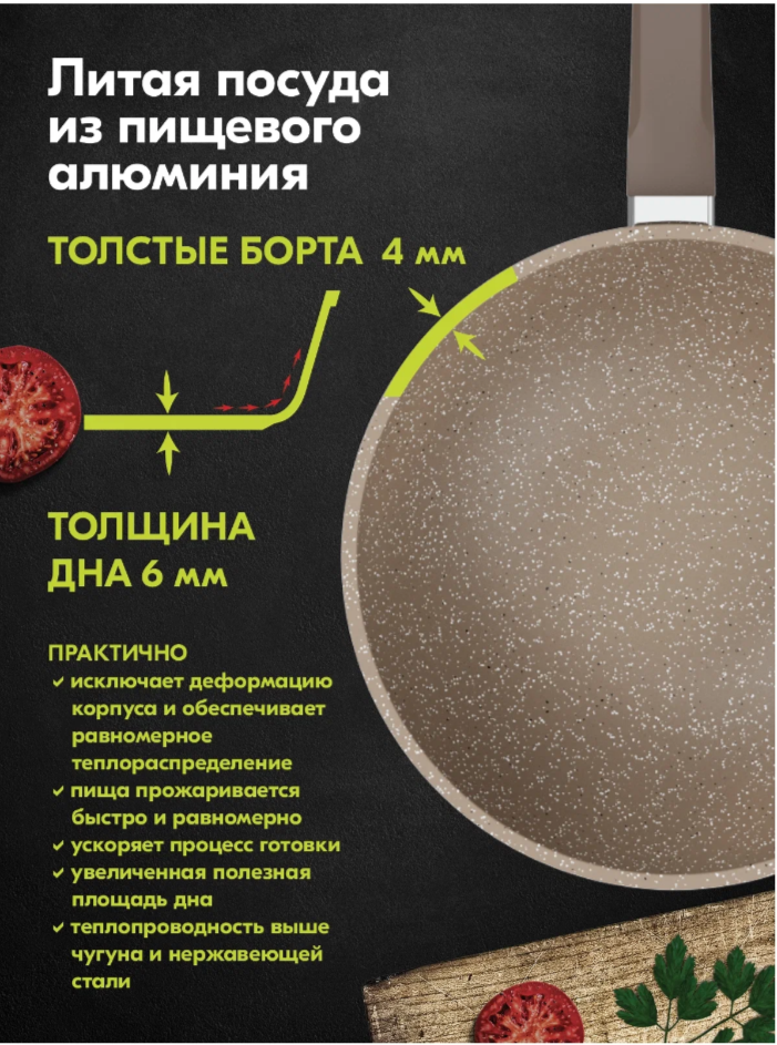Сковорода-вок мечта посуда мечта Гранит brown, несъемная ручка, 28 см (78806)