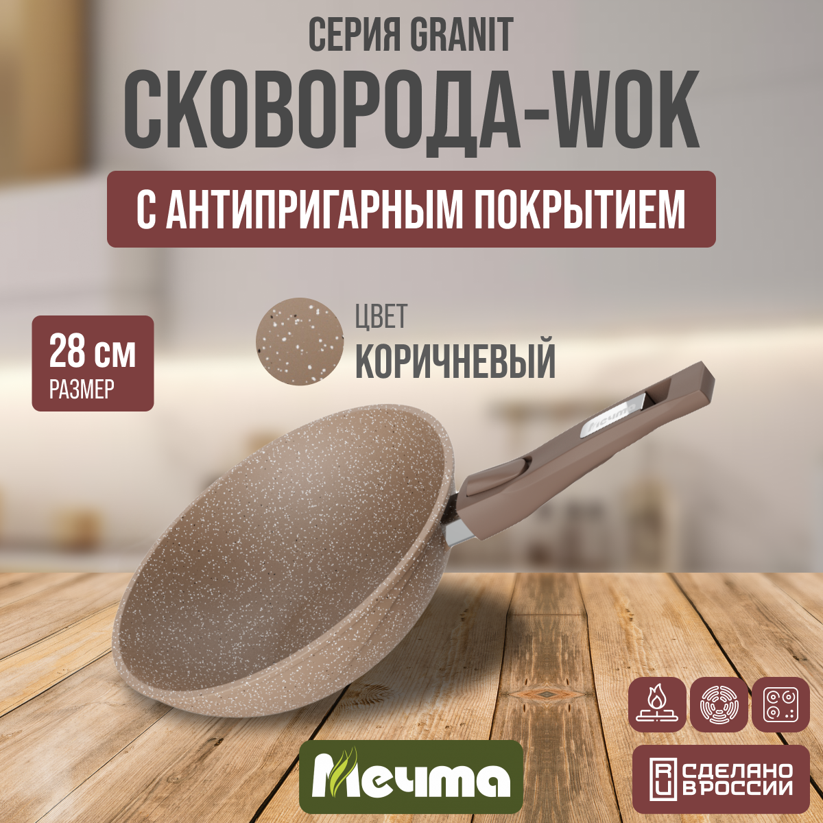 Сковорода-вок Мечта Гранит, 28 см, гранит brown