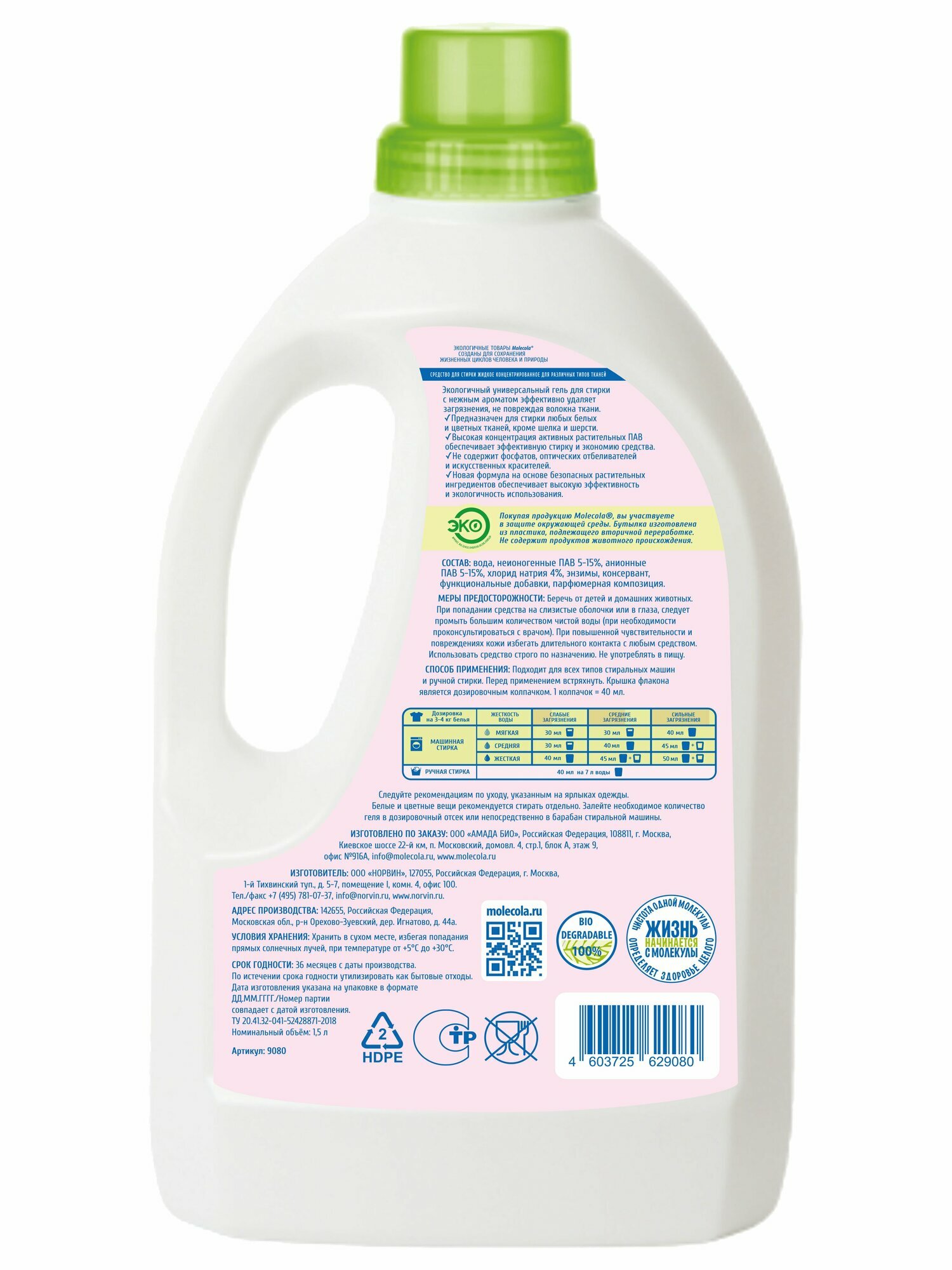 MOLECOLA "Экологичный универсальный гель д/стирки ""Французская лаванда"" (French Lavender). 1,5л"