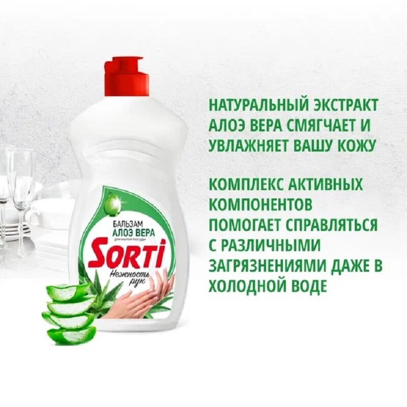 Средство для мытья посуды Sorti бальзам с алоэ вера, 450 г