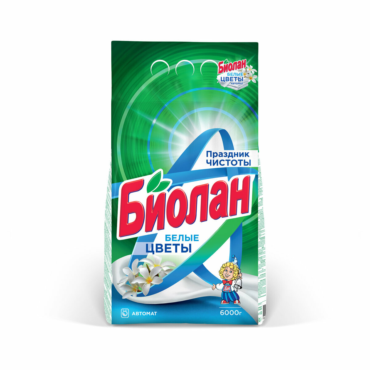 Стиральный порошок автомат 6 кг, БИОЛАН "Белые цветы" Комплект - 1 шт .