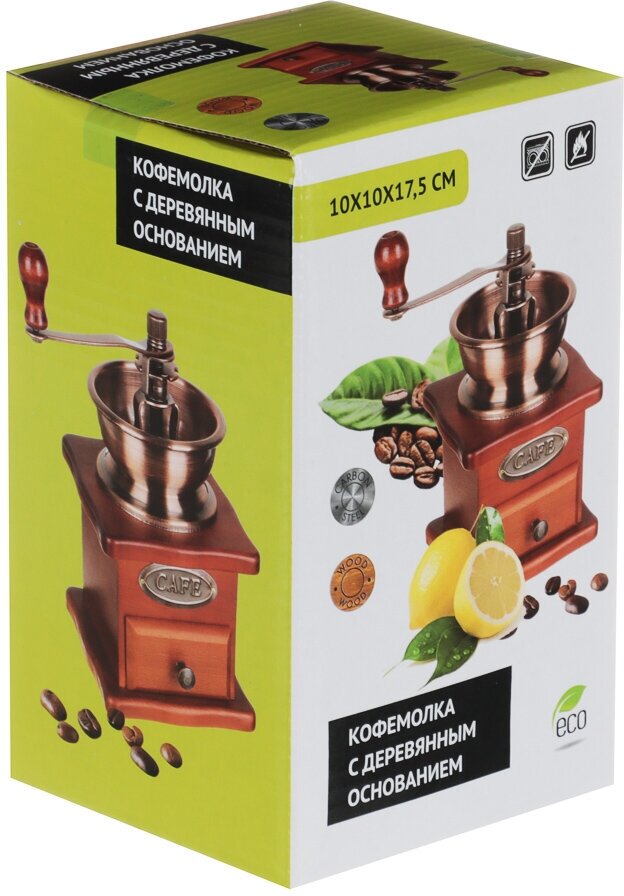 Кофемолка с деревянным основанием (металл) 10*10*17,5см интересное: