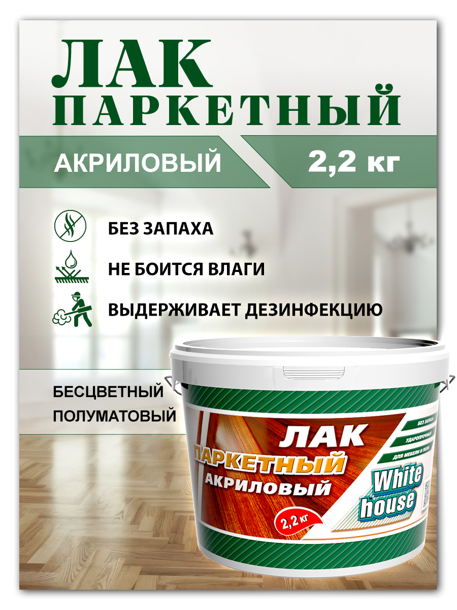 Купить ЛАК паркетный акриловый WHITE HOUSE бесцветный полуматовый 2,2кг
