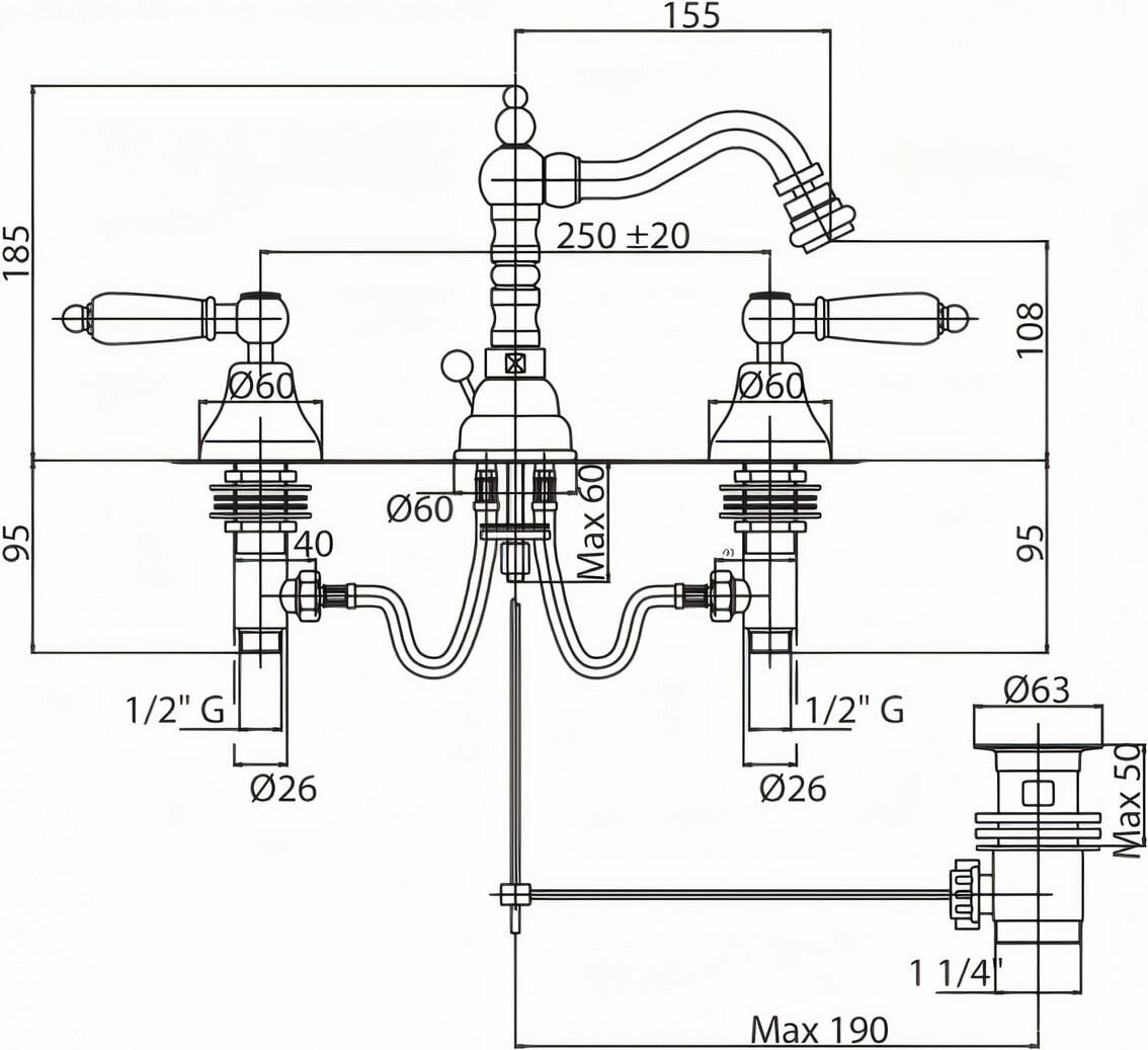 | Высота излива | 108 мм / 185 мм |