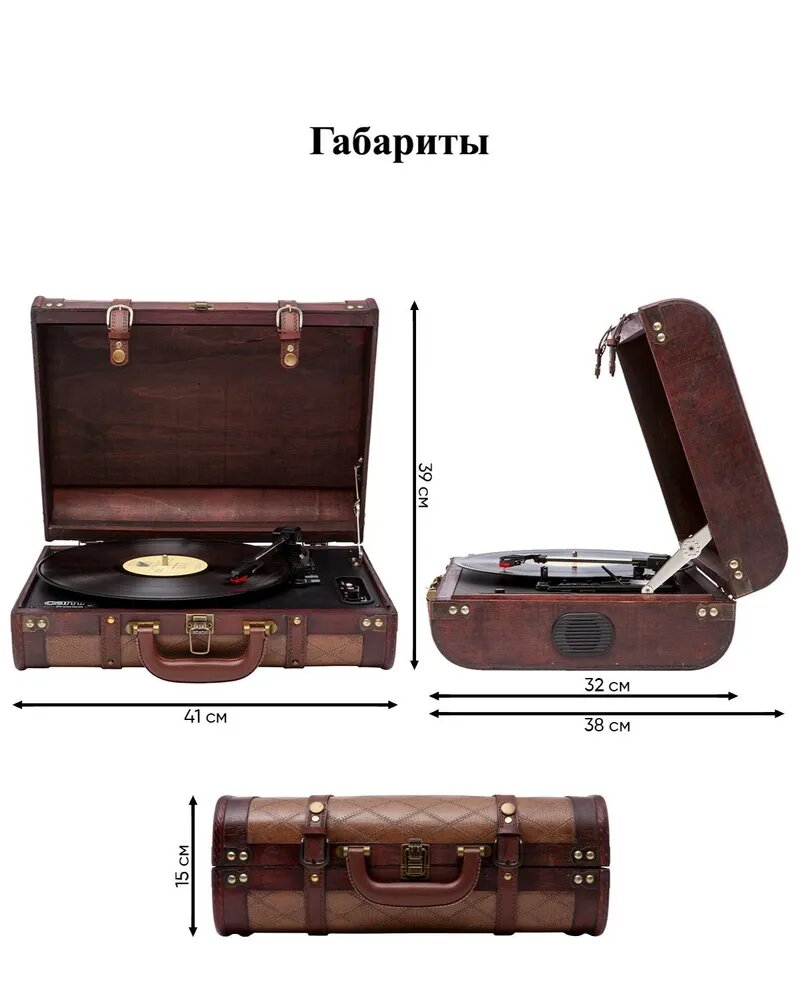 | Плюсы: | Прикольный патифон в чумаданчике |