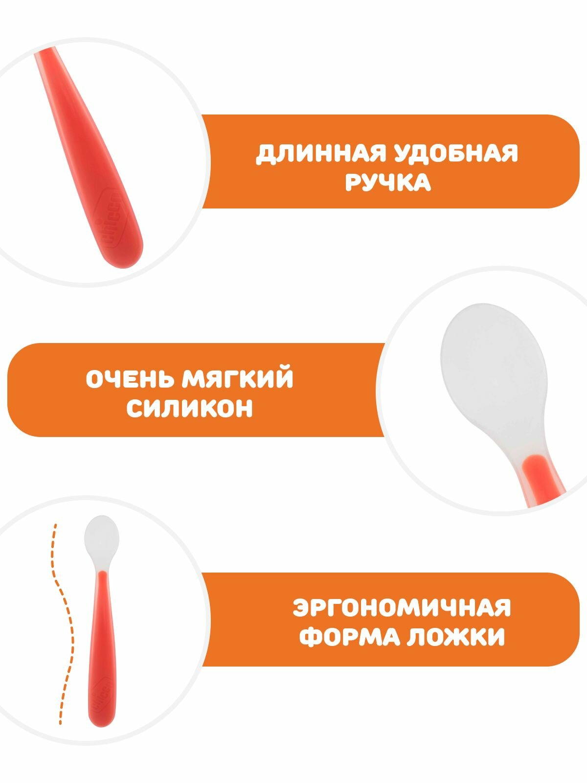 Chicco Ложка мягкая силиконовая 6м+ красная, 1 шт