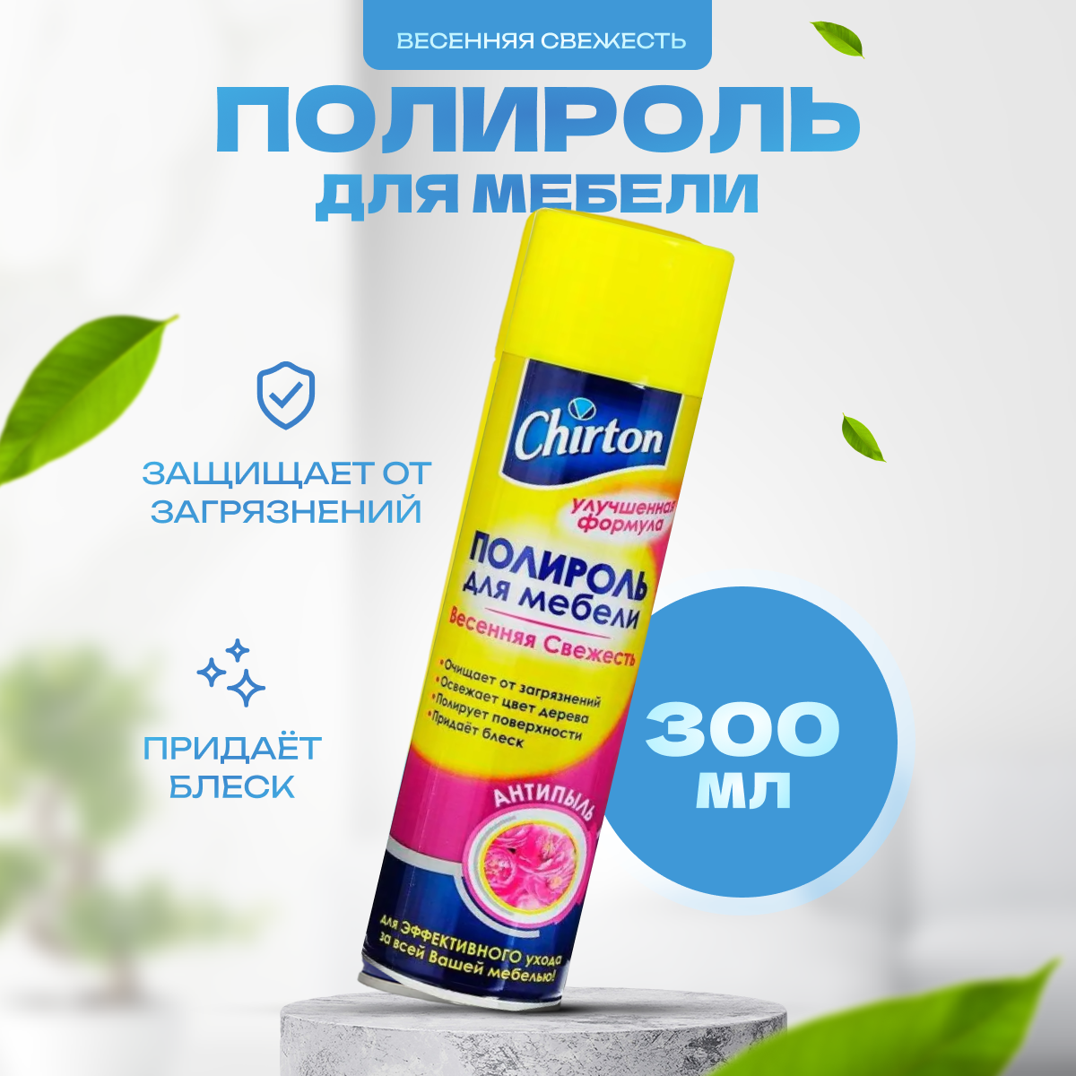CHIRTON Полироль для мебели Антипыль Весенняя свежесть 300 мл