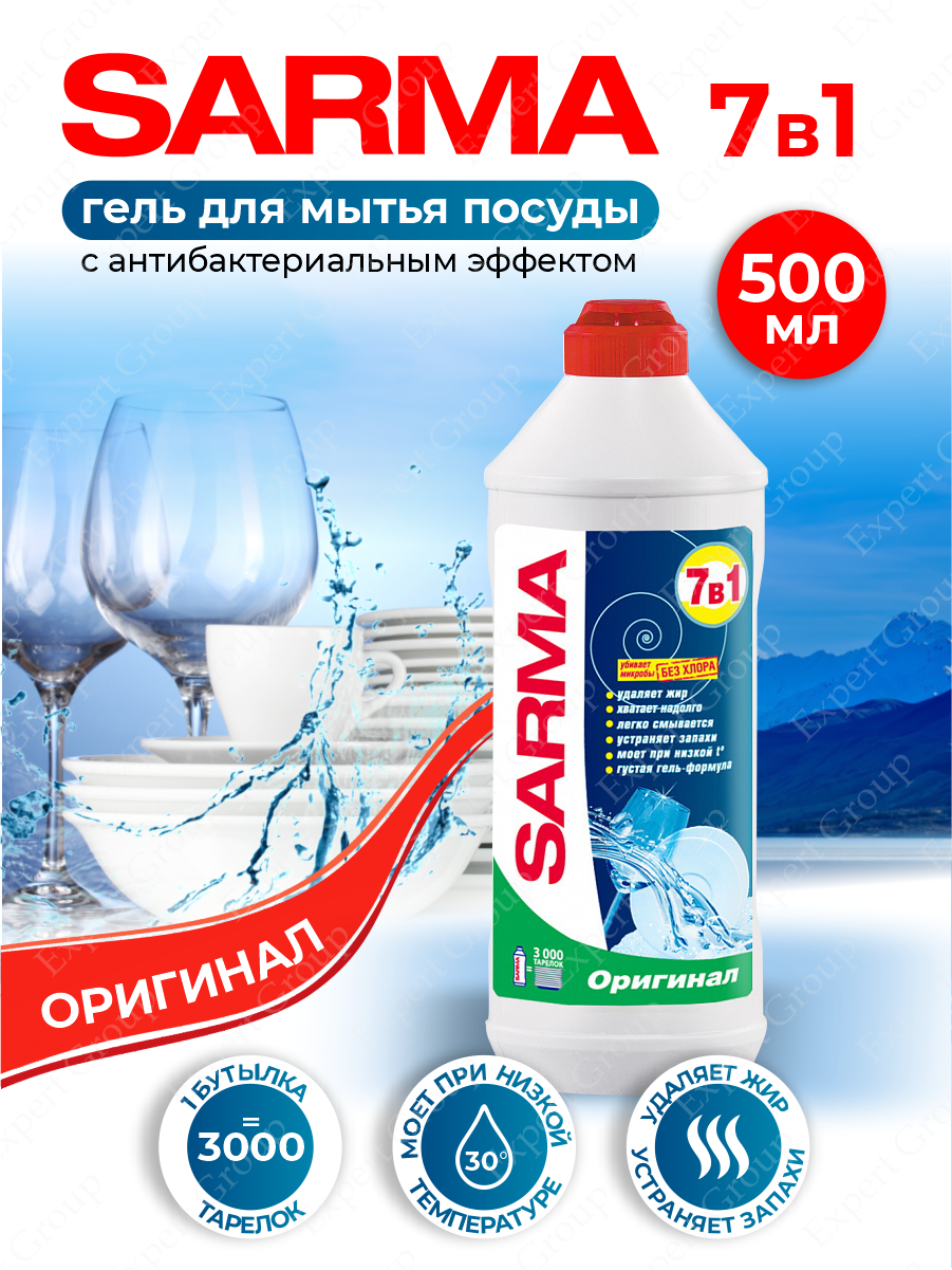 SARMA Гель для мытья посуды Оригинал, 0.5 л, 0.5 кг