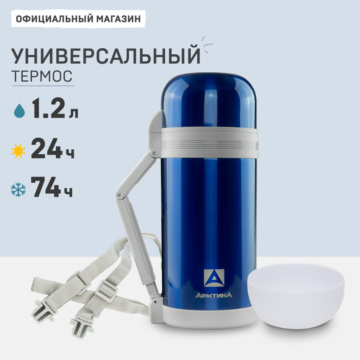 Термос 1,2 л для еды и напитков Арктика 202-1200 синий универсальный с ручкой и широким горлом